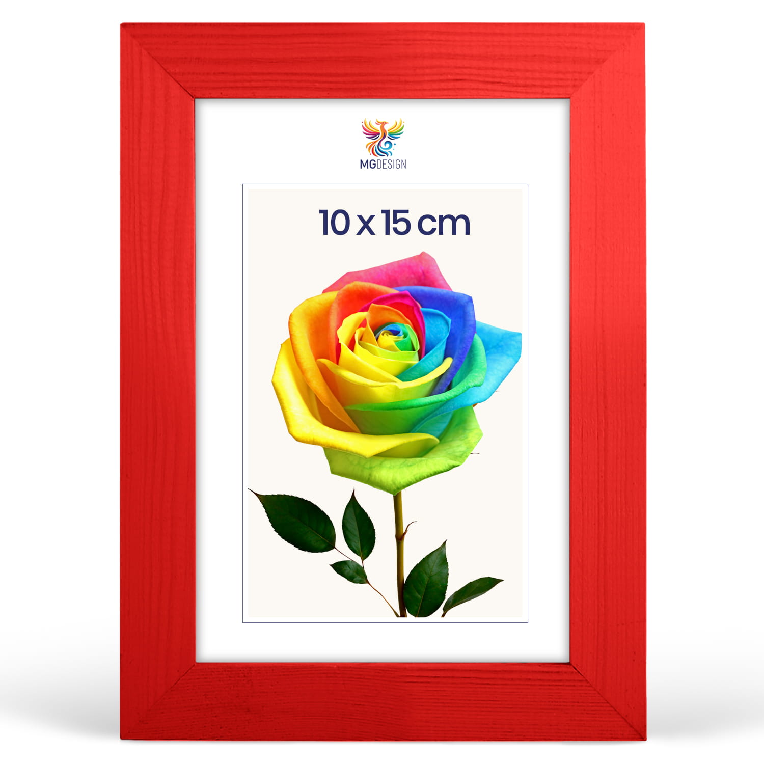 Red photo frame A6 4 x 6 in (10 x 15 cm), made of natural wood