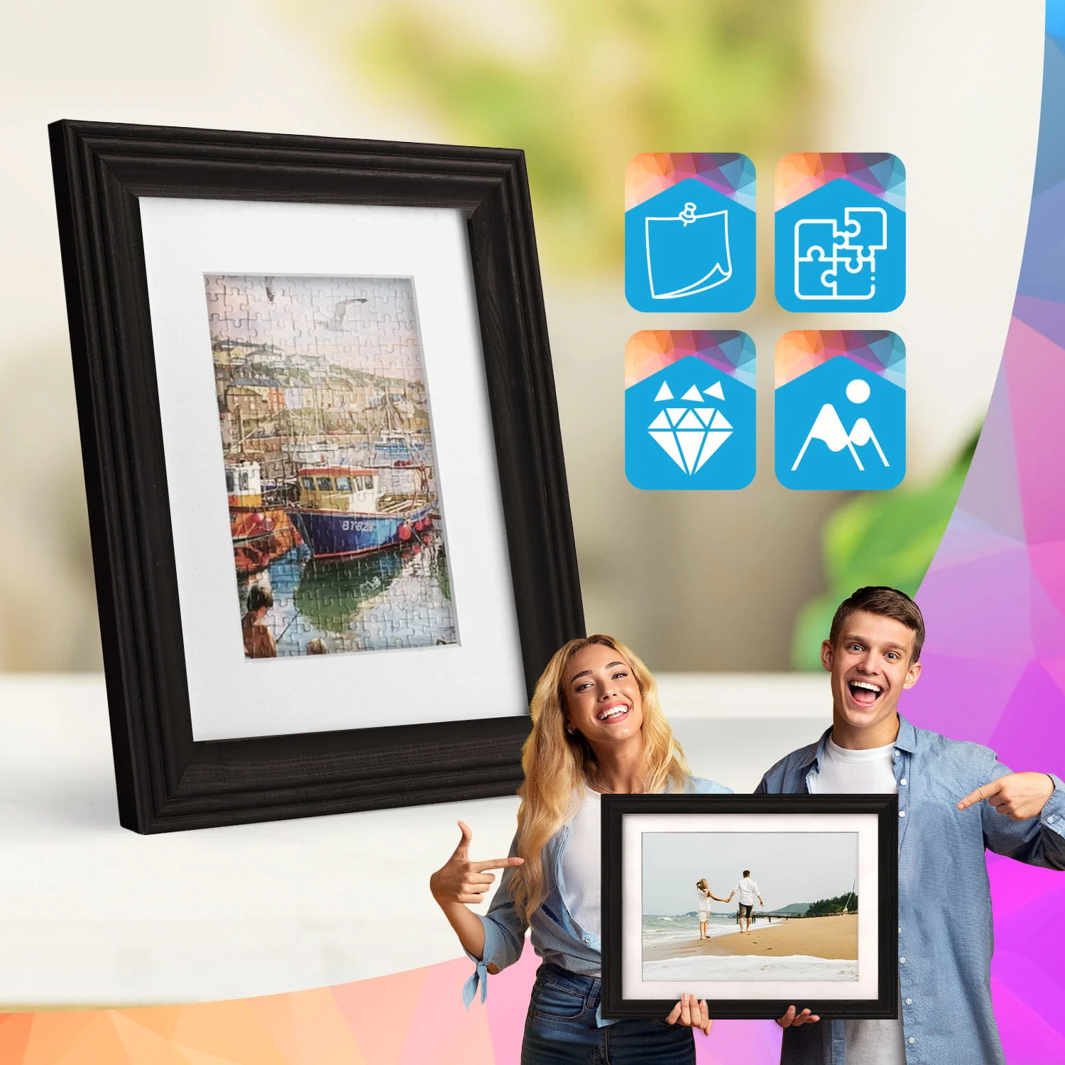 Set of 10 Black milled photo frames 7 x 9 in (18 x 24 cm), made of wood