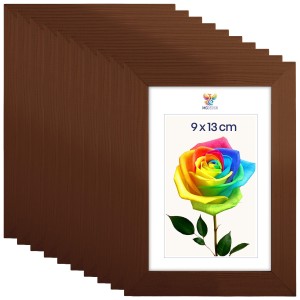 Set of 10 Brown photo frames 4 x 5 in (9 x 13 cm), made of natural wood