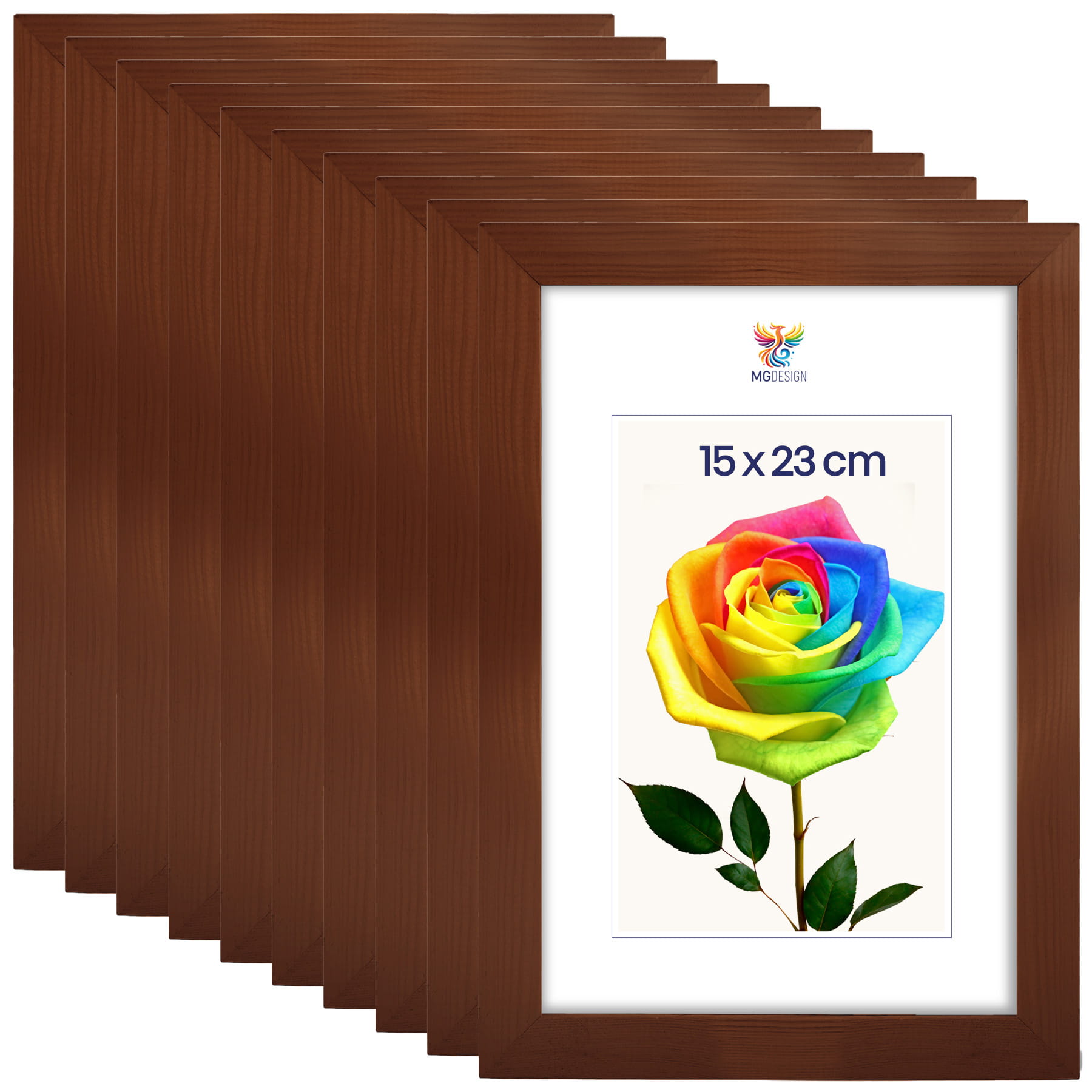 Set of 10 Brown photo frames 6 x 9 in (15 x 23 cm), made of natural wood