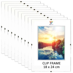 The set includes 10 clip frames with acrylic front, HDF backboard, metal clips and hangers – a clean, elegant framing solution for modern and classic interiors alike.