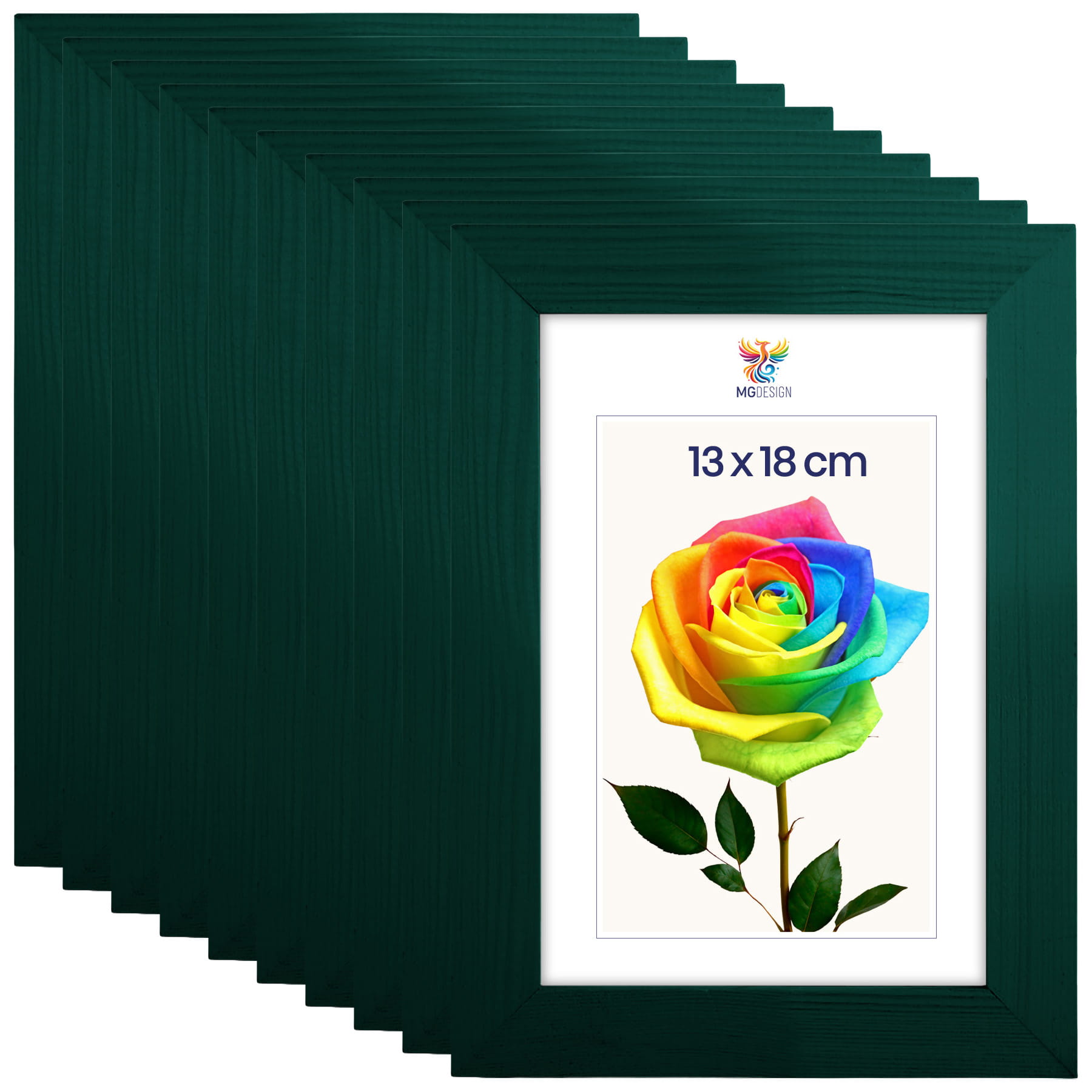 Set of 10 Green photo frames 5 x 7 in (13 x 18 cm), made of natural wood