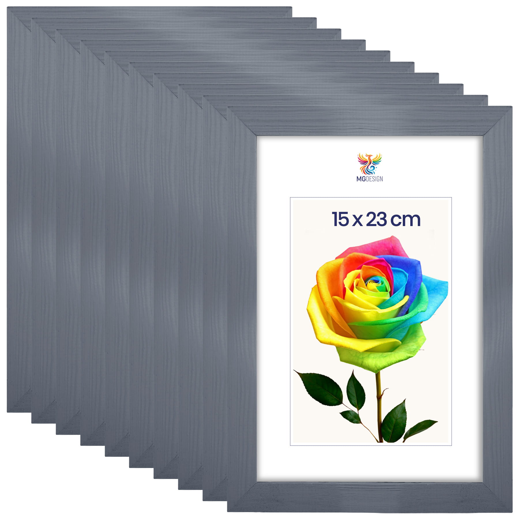 Set of 10 Grey photo frames 6 x 9 in (15 x 23 cm), made of natural wood