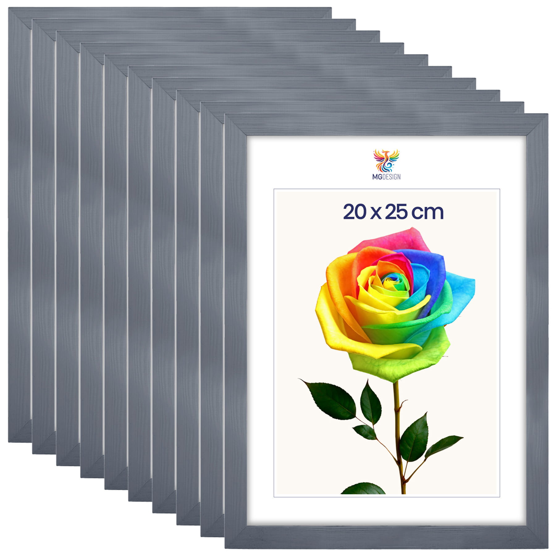 Set of 10 Grey photo frames 8 x 10 in (20 x 25 cm), made of natural wood