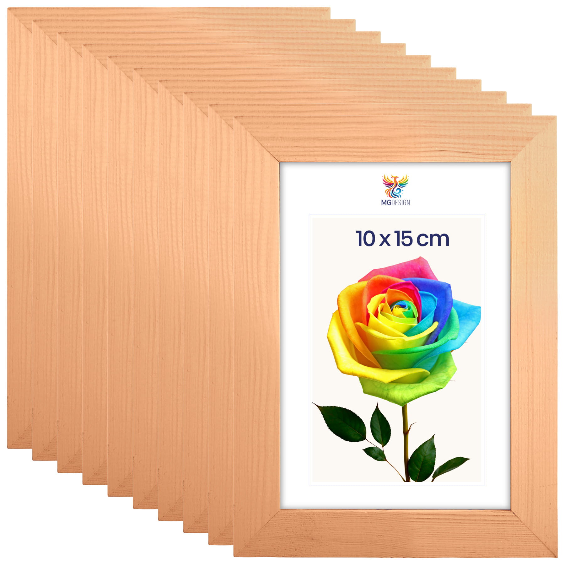 Set of 10 Natural photo frames A6 4 x 6 in (10 x 15 cm), made of wood