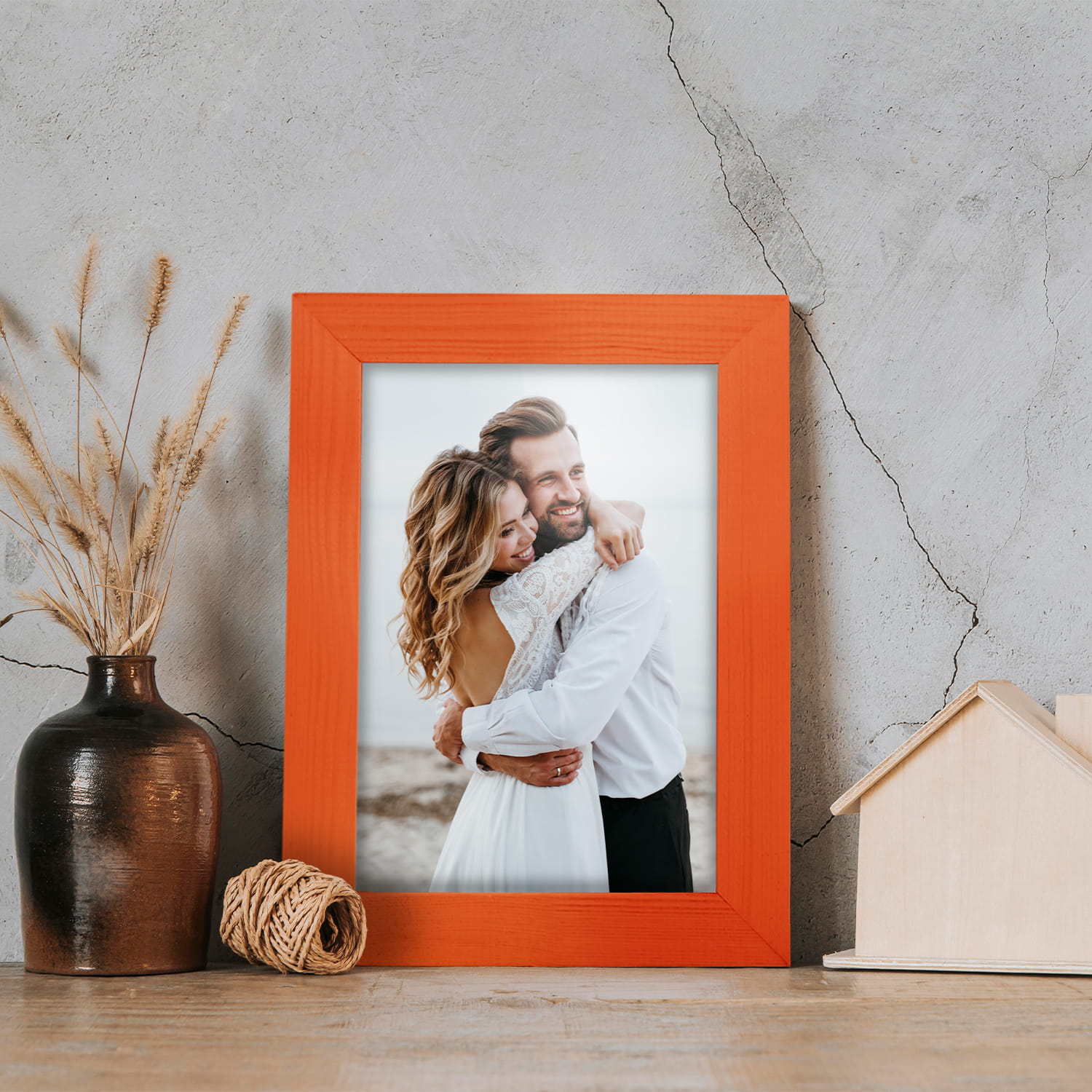 Set of 10 Orange photo frames 4 x 5 in (9 x 13 cm), made of natural wood
