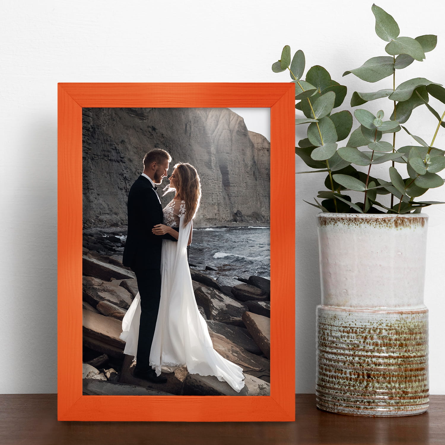 Set of 10 Orange photo frames 6 x 9 in (15 x 23 cm), made of natural wood
