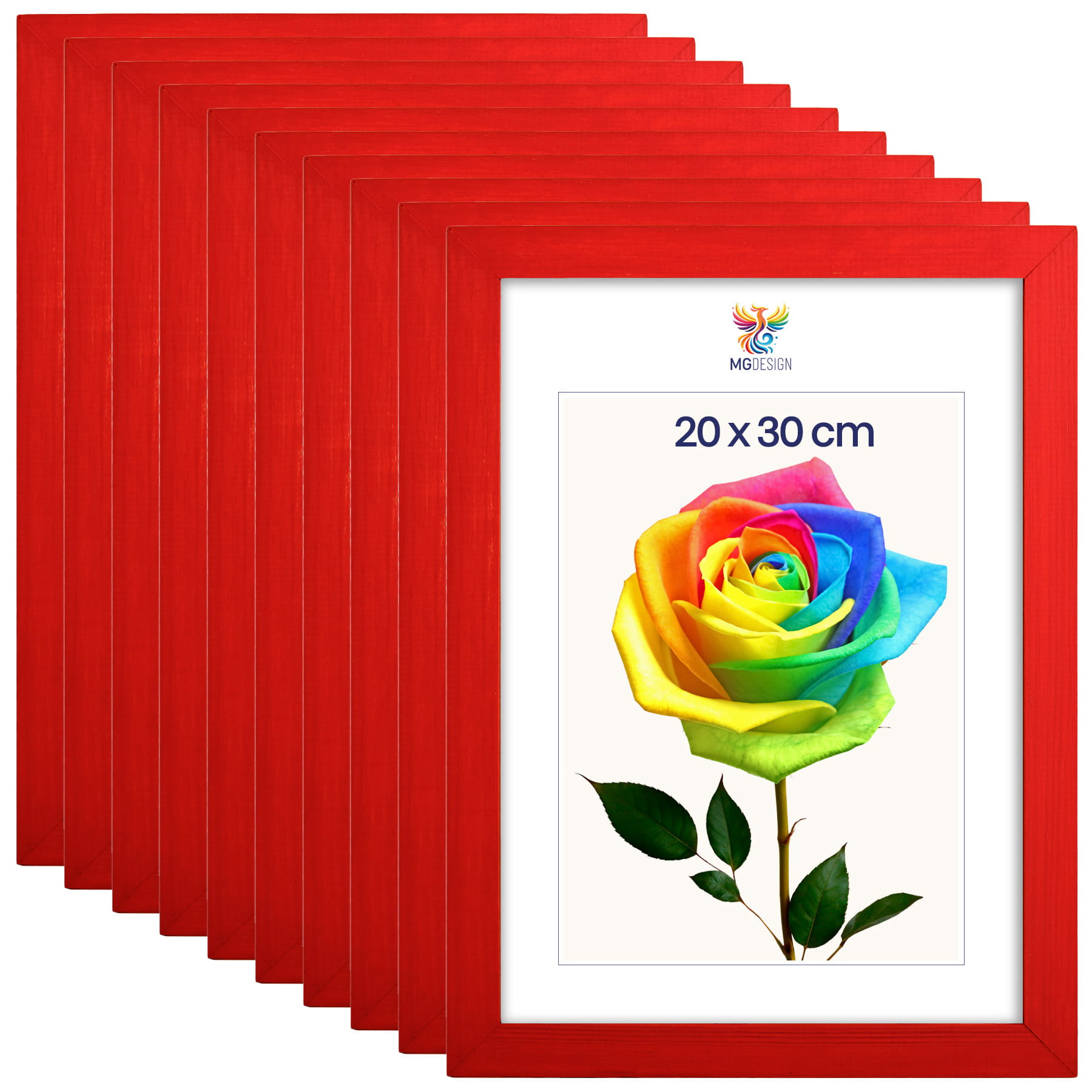 Set of 10 Red photo frames 8 x 12 in (20 x 30 cm), made of natural wood