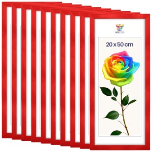 Set of 10 Red photo frames 8 x 20 in (20 x 50 cm), made of natural wood