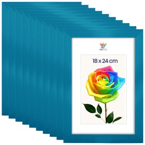 Set of 10 Turquoise photo frames 7 x 9 in (18 x 24 cm), made of natural wood