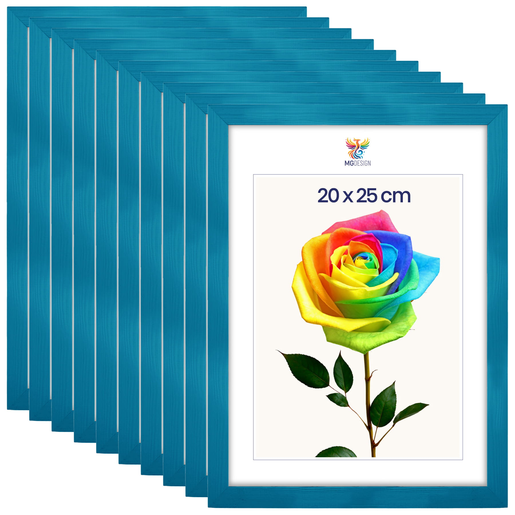 Set of 10 Turquoise photo frames 8 x 10 in (20 x 25 cm), made of natural wood