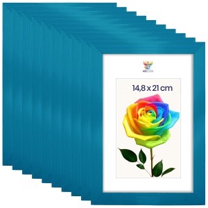 Set of 10 Turquoise photo frames A5 6 x 8 in (15 x 21 cm), made of natural wood