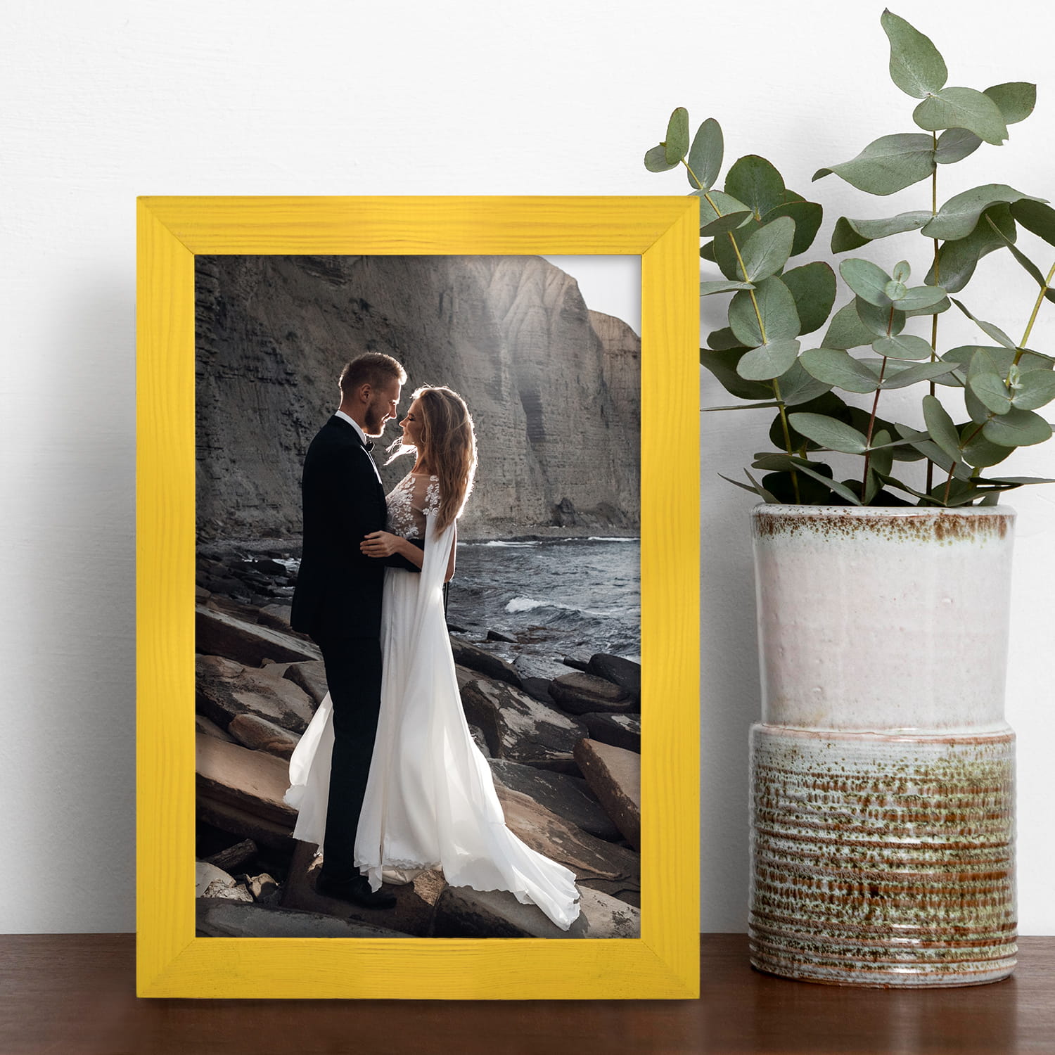 Set of 10 Yellow photo frames 6 x 9 in (15 x 23 cm), made of natural wood
