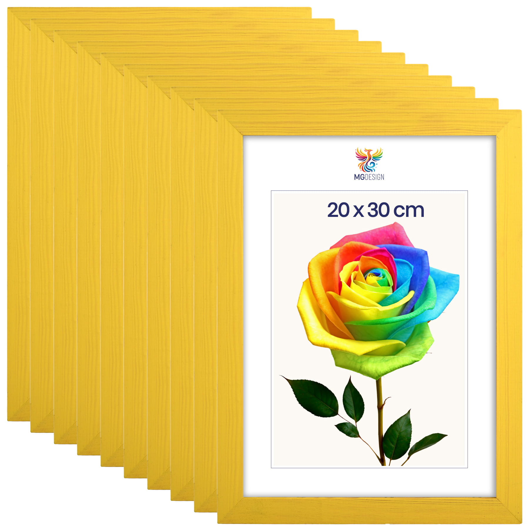 Set of 10 Yellow photo frames 8 x 12 in (20 x 30 cm), made of natural wood