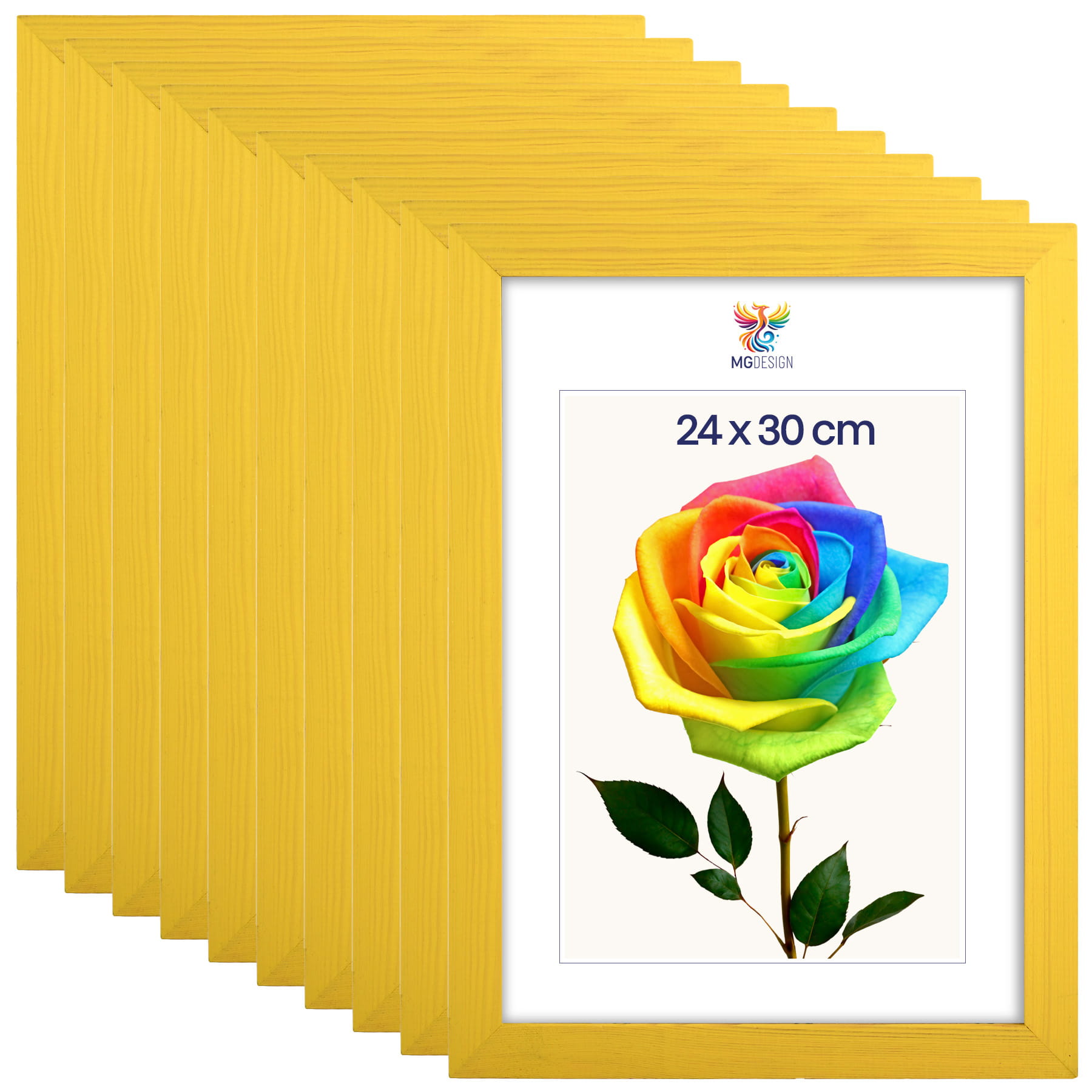 Set of 10 Yellow photo frames 9 x 12 in (24 x 30 cm), made of natural wood