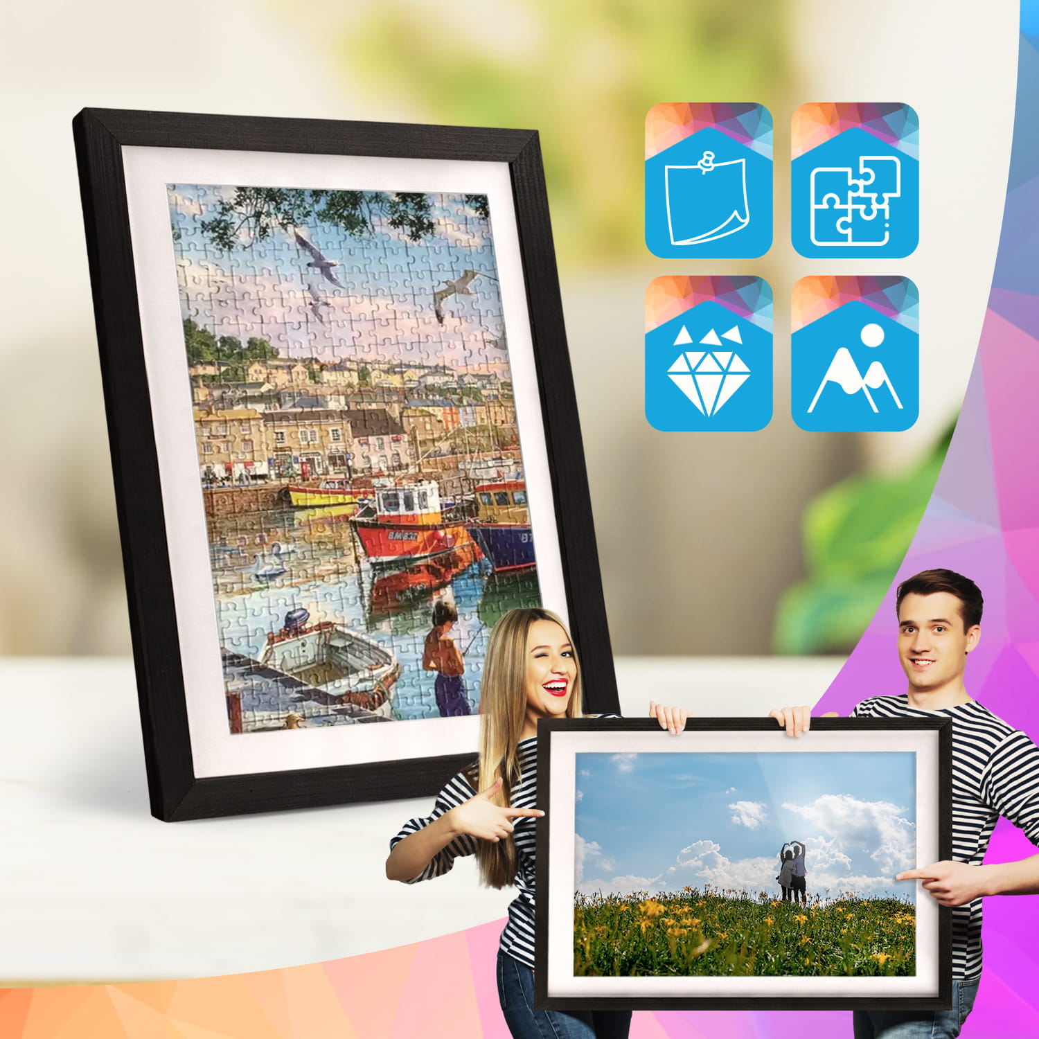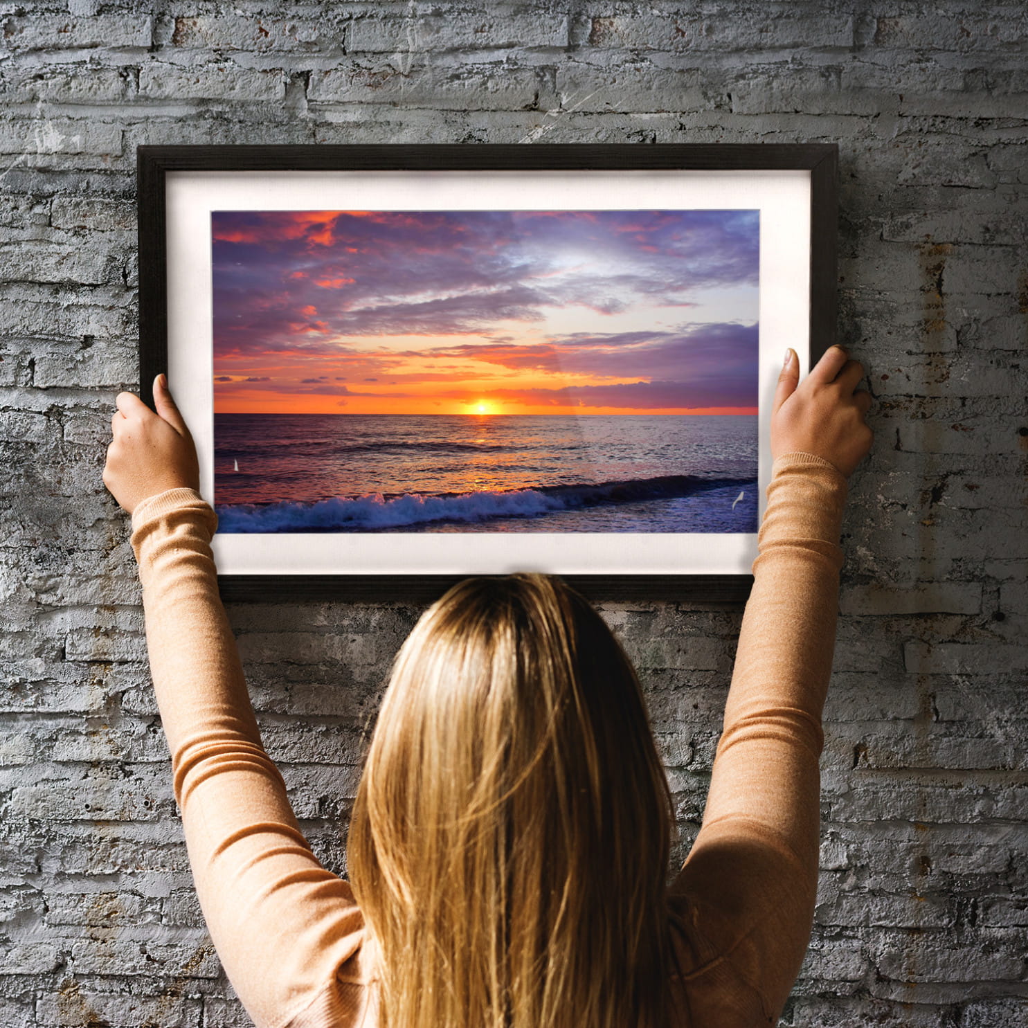 The frames can be placed on furniture or hung on the wall. Thanks to their high profile, they create a modern effect of distancing the images from the surface, which looks good in both home and commercial interiors.