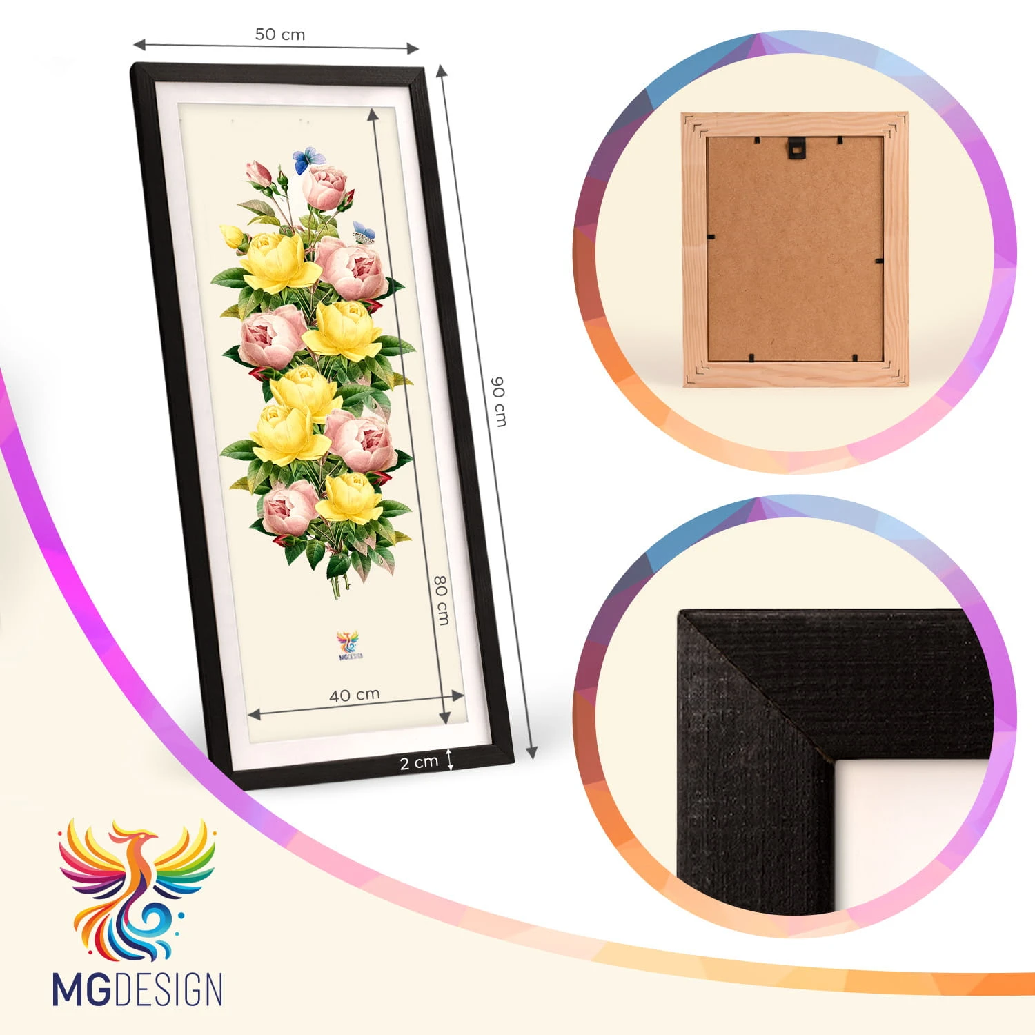 The set includes a passe-partout for each frame, creating an aesthetic gap between the graphic and the plexiglass and enhancing the visual effect of the entire composition. A stable HDF board and solid metal hangers allow for quick installation and easy replacement of the contents without the use of tools.