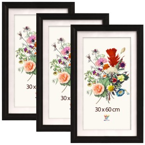 Set of 3 Black milled photo frames 12 x 24 in (30 x 60 cm), made of wood