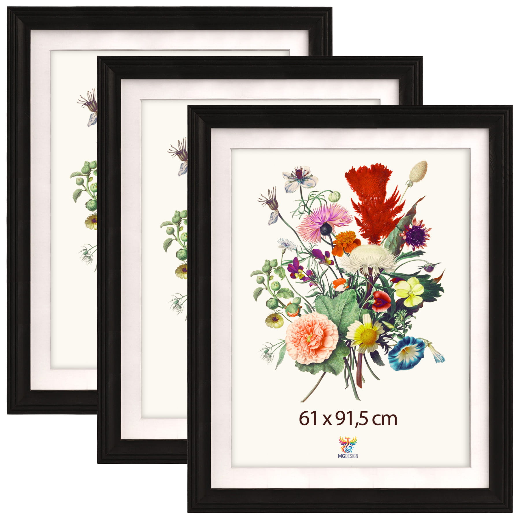 The frames are designed for wall mounting. Thanks to the carefully crafted milled profile, the whole frame adheres firmly to the surface, and the displayed motifs remain the central element of the decoration. The set is perfect for the home, office and gallery walls.