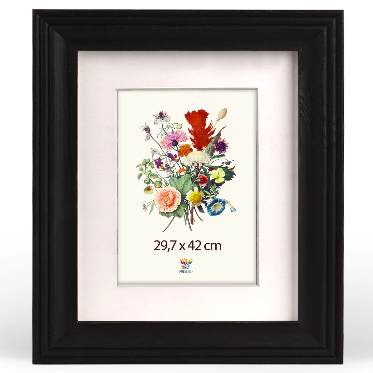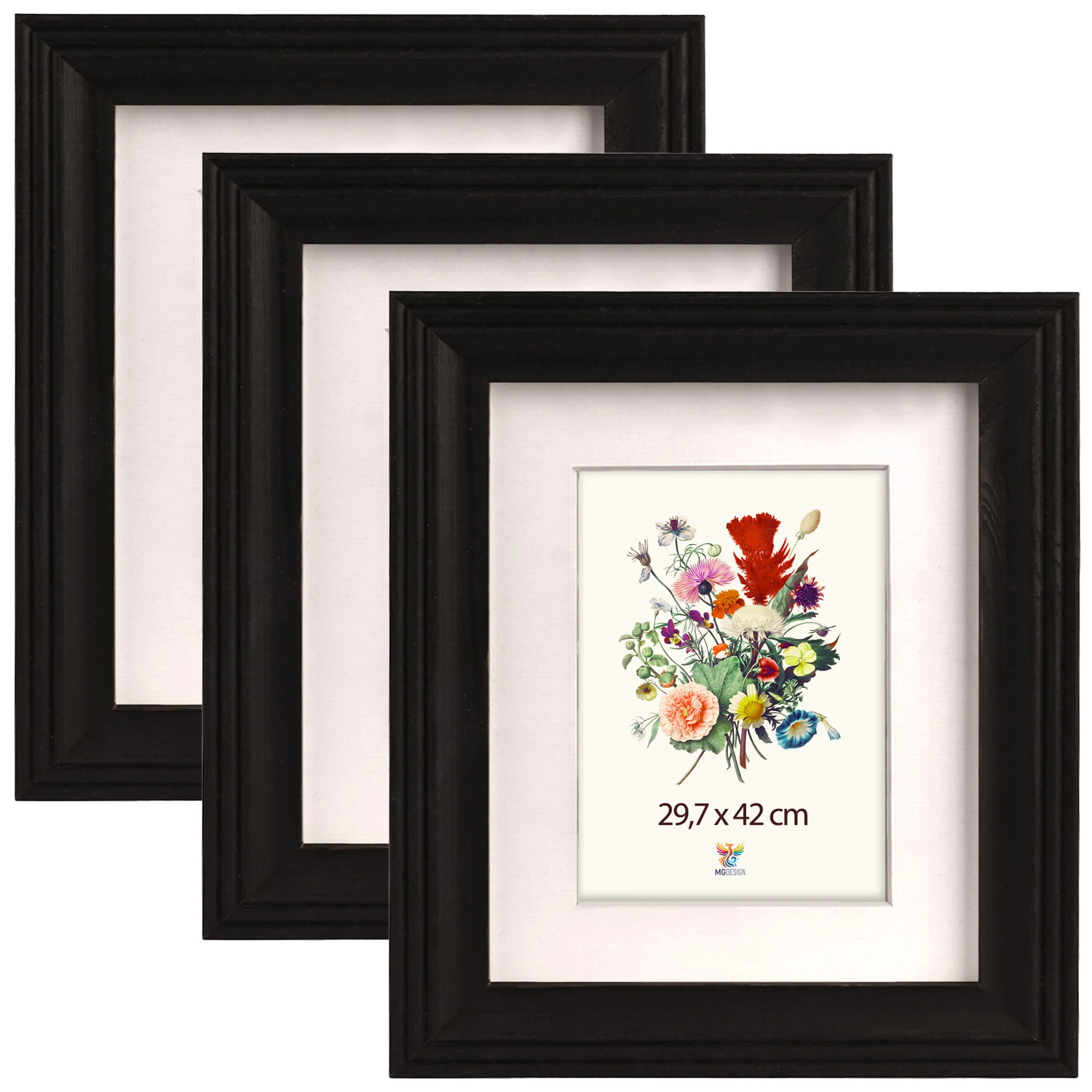 Set of 3 Black milled photo frames A3 12 x 17 in (29,7 x 42 cm), made of wood