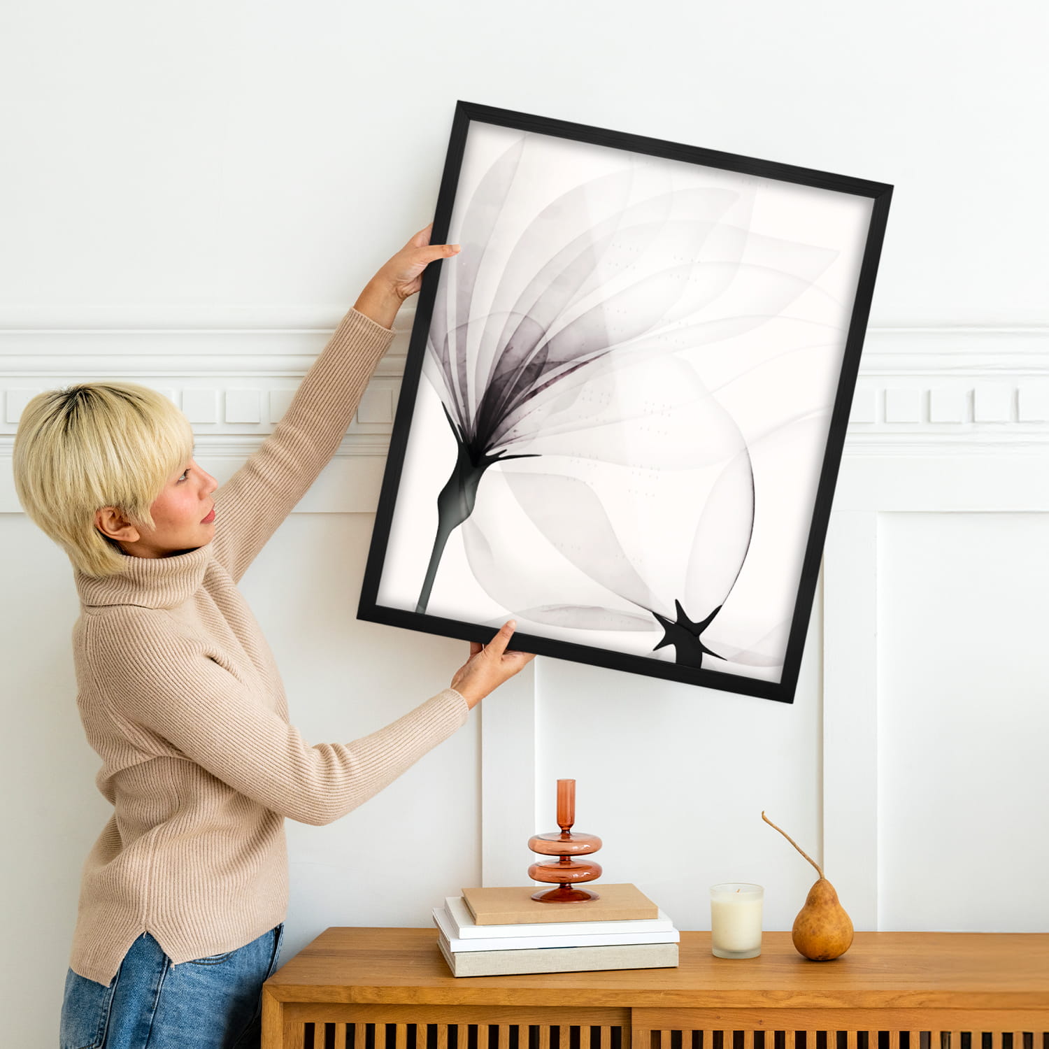 The frames are made of natural wood, carefully processed to preserve the visible structure of the material, which gives the whole a natural and timeless character. The front of the frames is made of lightweight and damage-resistant plexiglass, which is a safer alternative to traditional glass and ensures good visibility of the framed works.