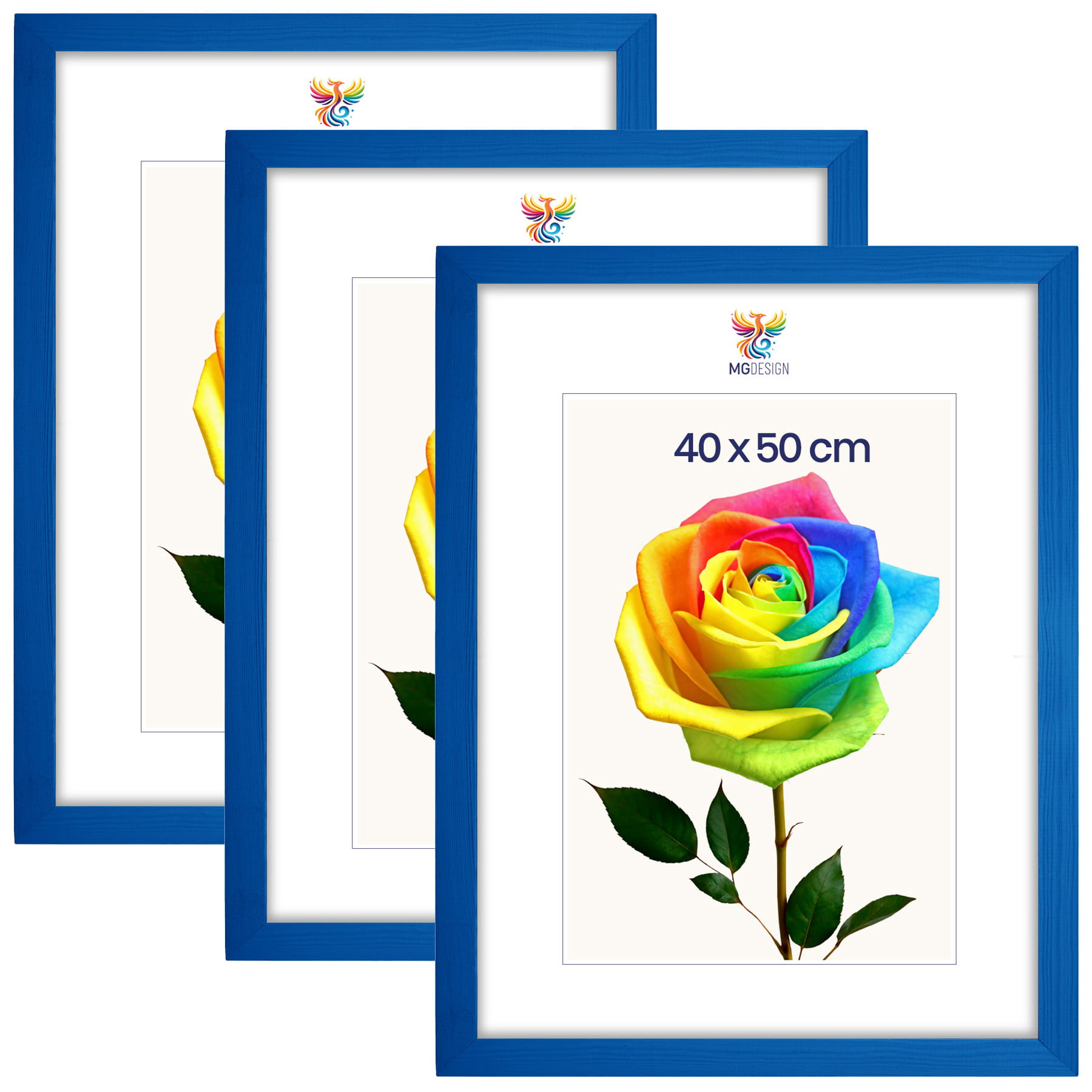 Set of 3 Blue photo frames 16 x 20 in (40 x 50 cm), made of natural wood