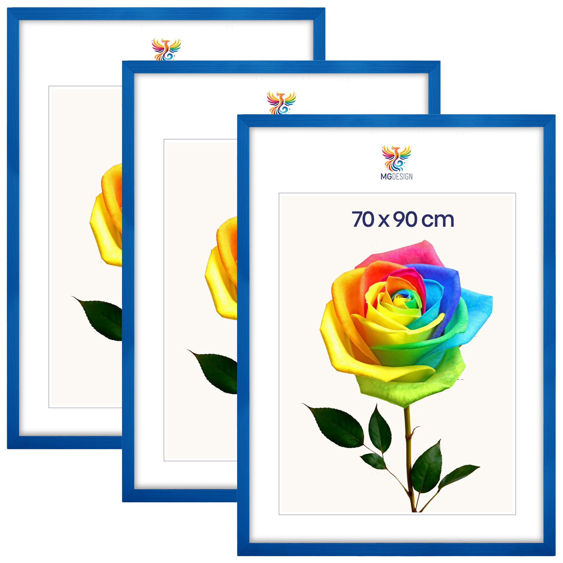 Set of 3 Blue photo frames 28 x 36 in (70 x 90 cm), made of natural wood