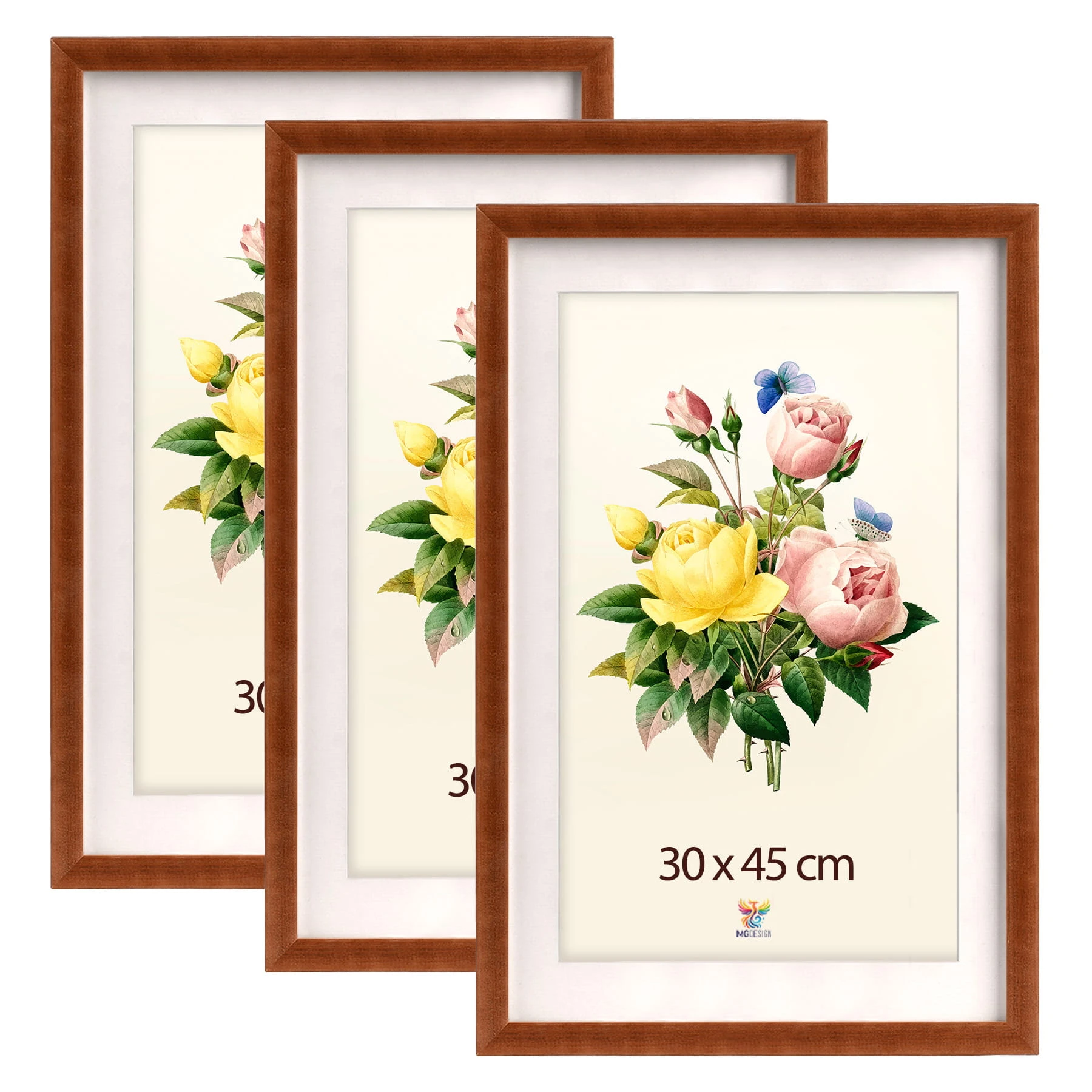 Set of 3 Brown deep photo frames 12 x 18 in (30 x 45 cm), made of wood
