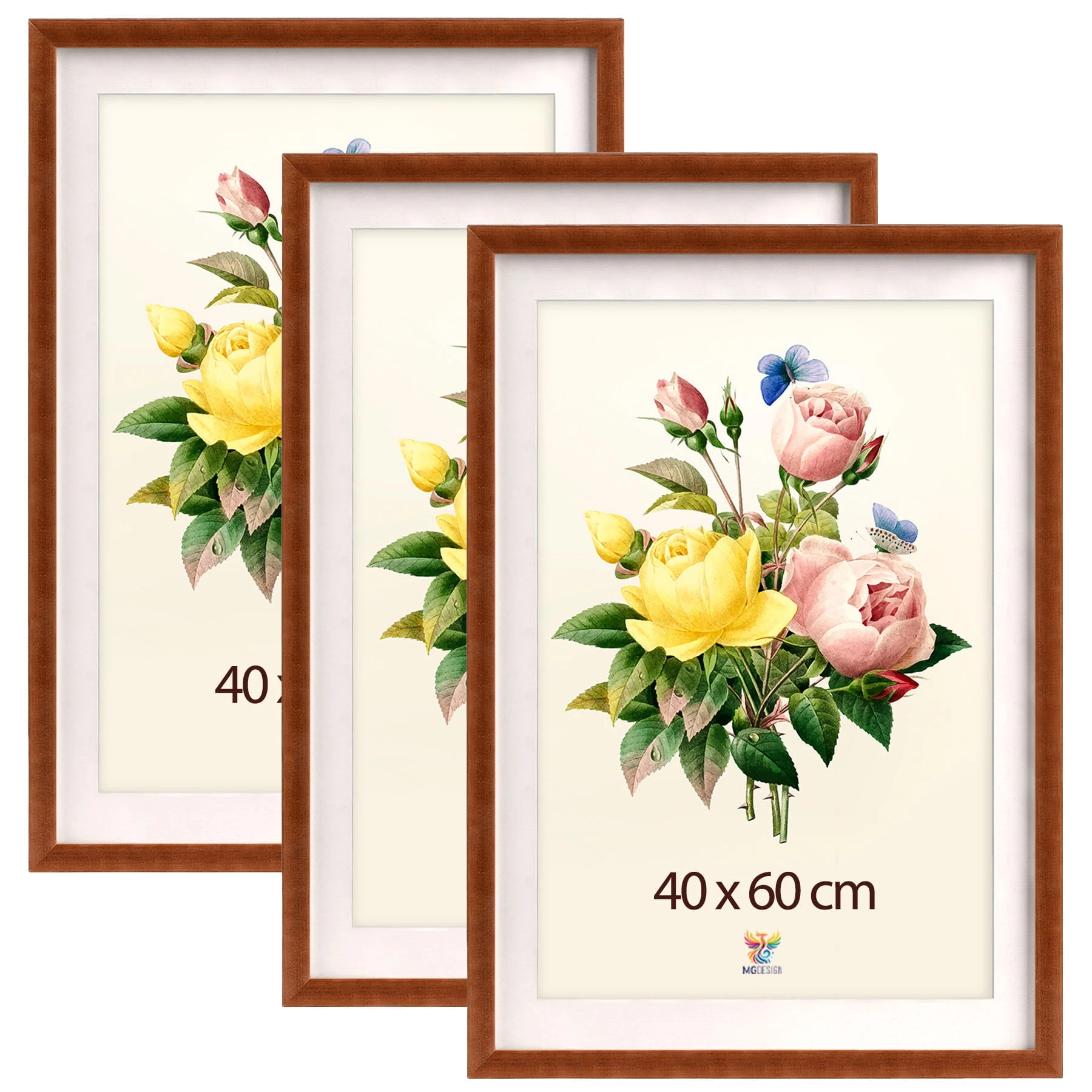 Set of 3 Brown deep photo frames 16 x 24 in (40 x 60 cm), made of wood
