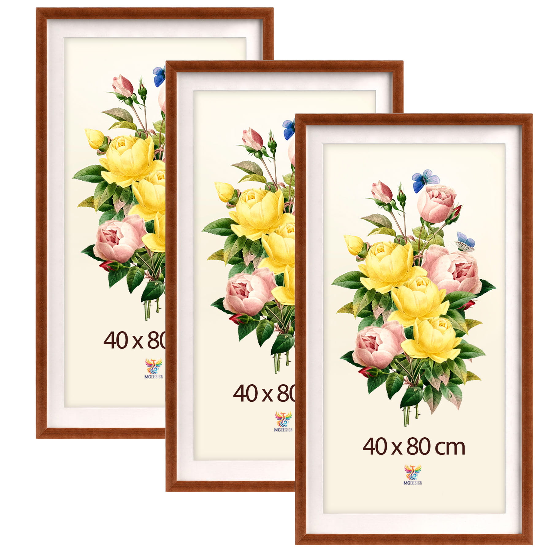 Set of 3 Brown deep photo frames 16 x 32 in (40 x 80 cm), made of wood