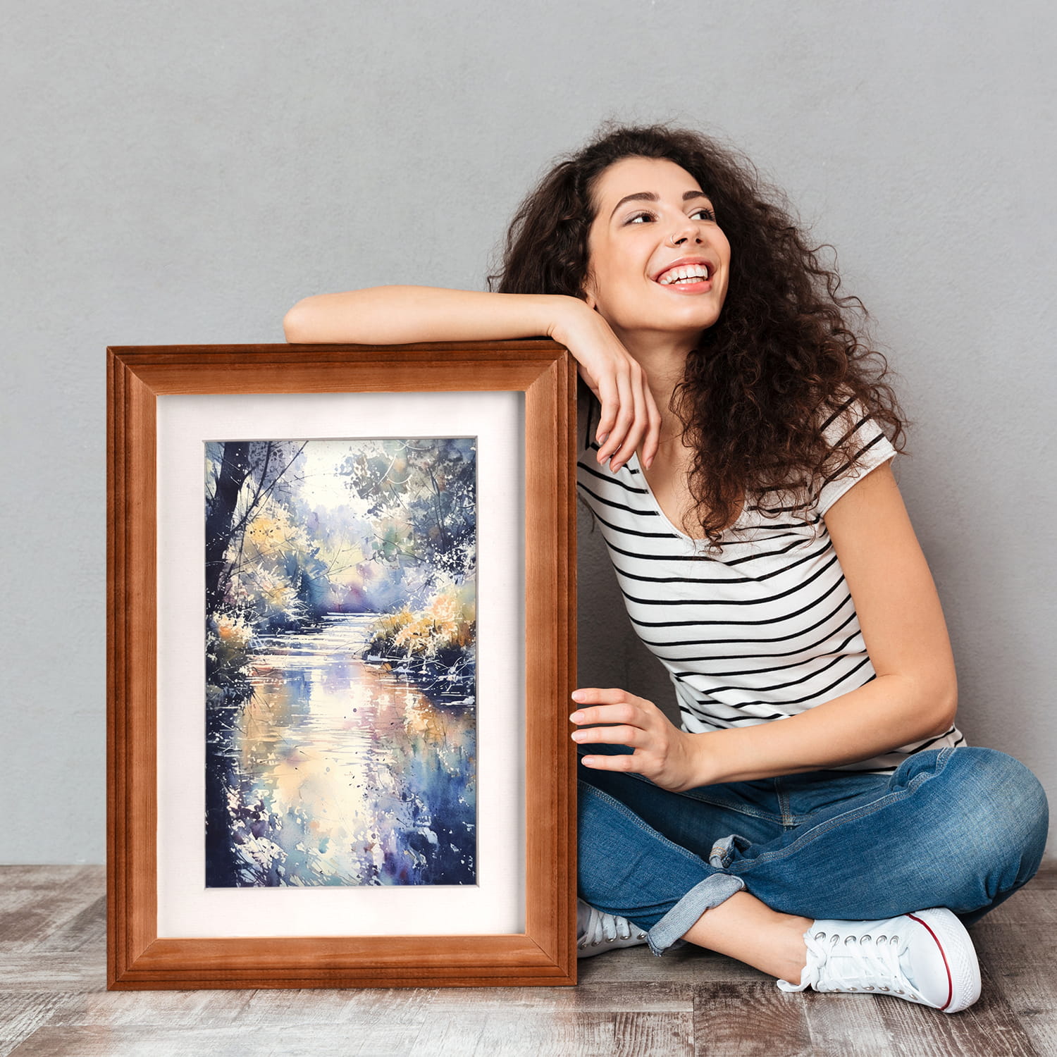 The frames are made of natural wood, carefully processed to preserve the visible structure of the material, which gives the whole a natural and timeless character. The front of the frames is made of lightweight and damage-resistant plexiglass, ensuring safety and good visibility of the framed works compared to traditional glass.