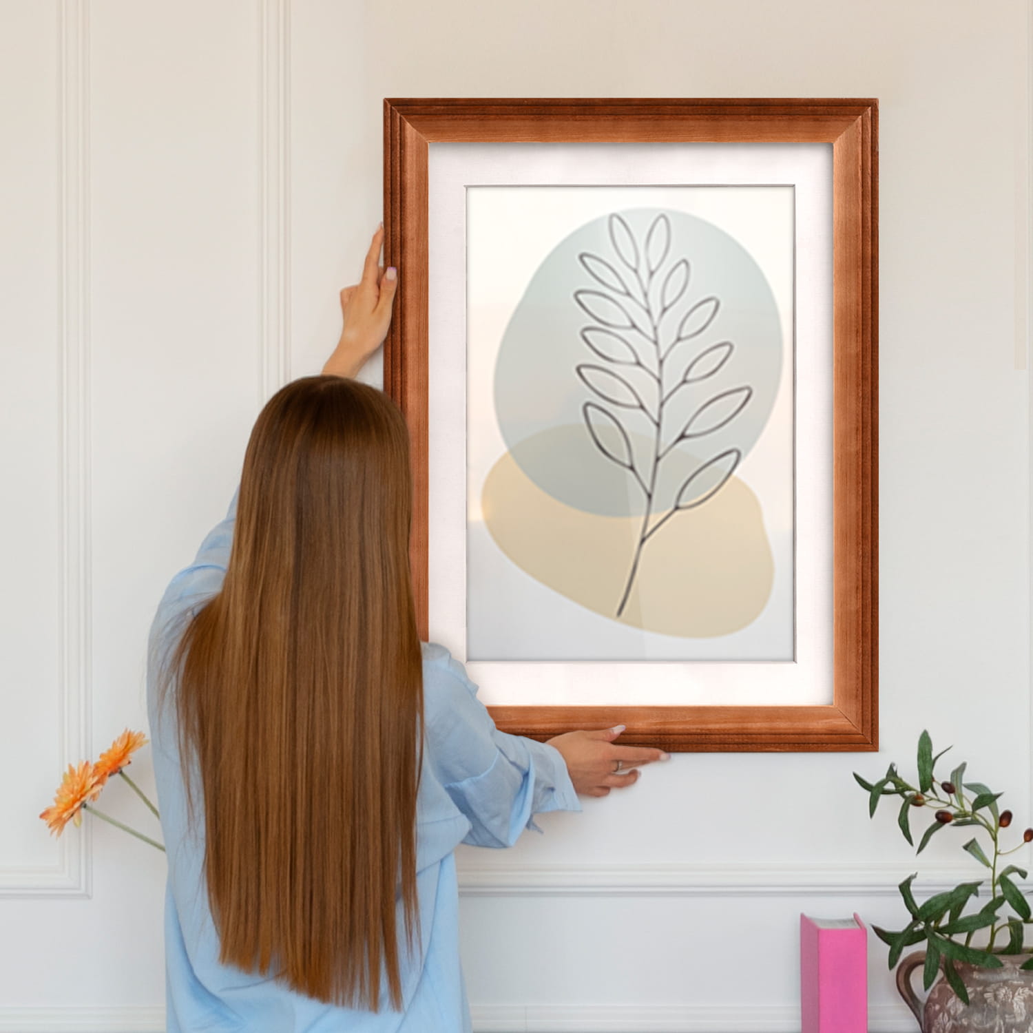 The set includes a passe-partout for each frame, which creates a clear and aesthetic gap between the graphic and the plexiglass, enhancing the visual effect of the entire composition and giving it a professional look. A stable HDF board and solid metal hangers allow for quick installation and easy replacement of the contents without the use of tools.