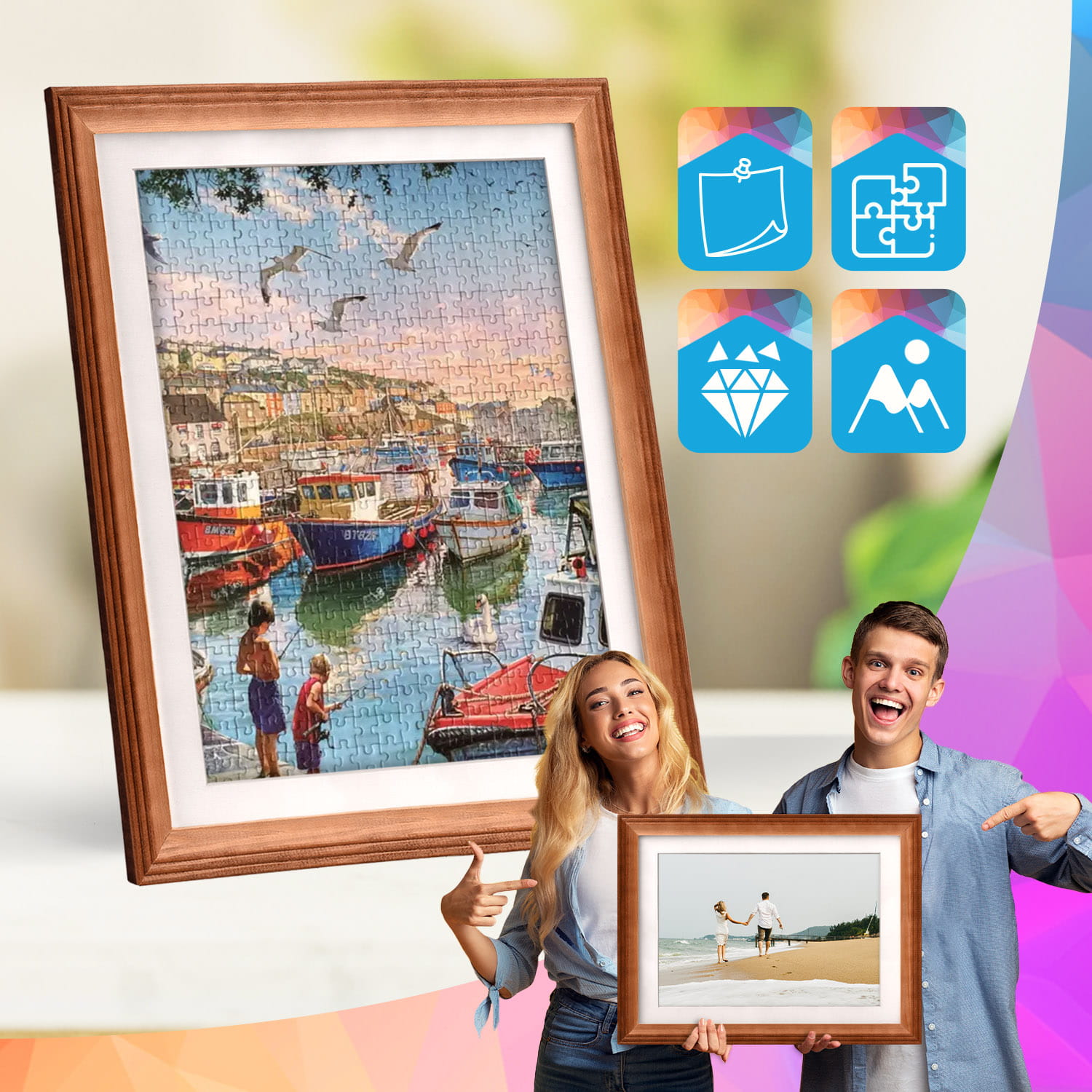 This set of milled wooden frames is an aesthetic and consistent solution for framing photographs, posters, graphics and art prints. The decorative, precisely crafted frame profile gives the entire composition an elegant character and emphasises the presented motifs, maintaining an orderly and harmonious appearance.