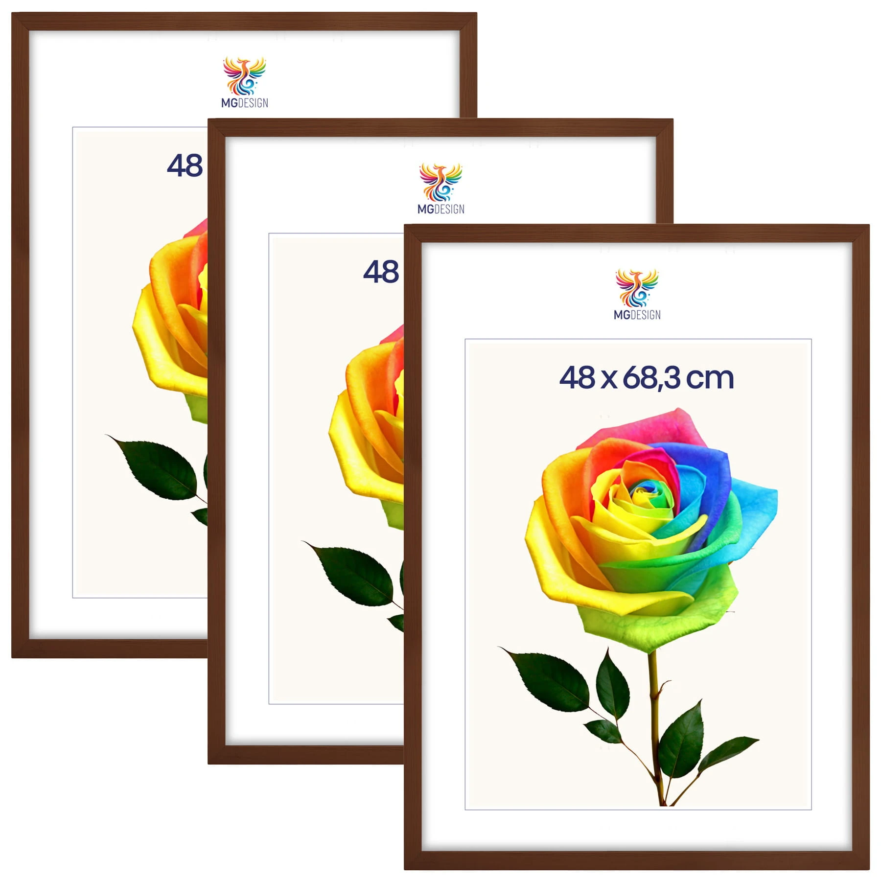 Set of 3 Brown photo frames 19 x 27 in (48 x 68,3 cm), made of natural wood