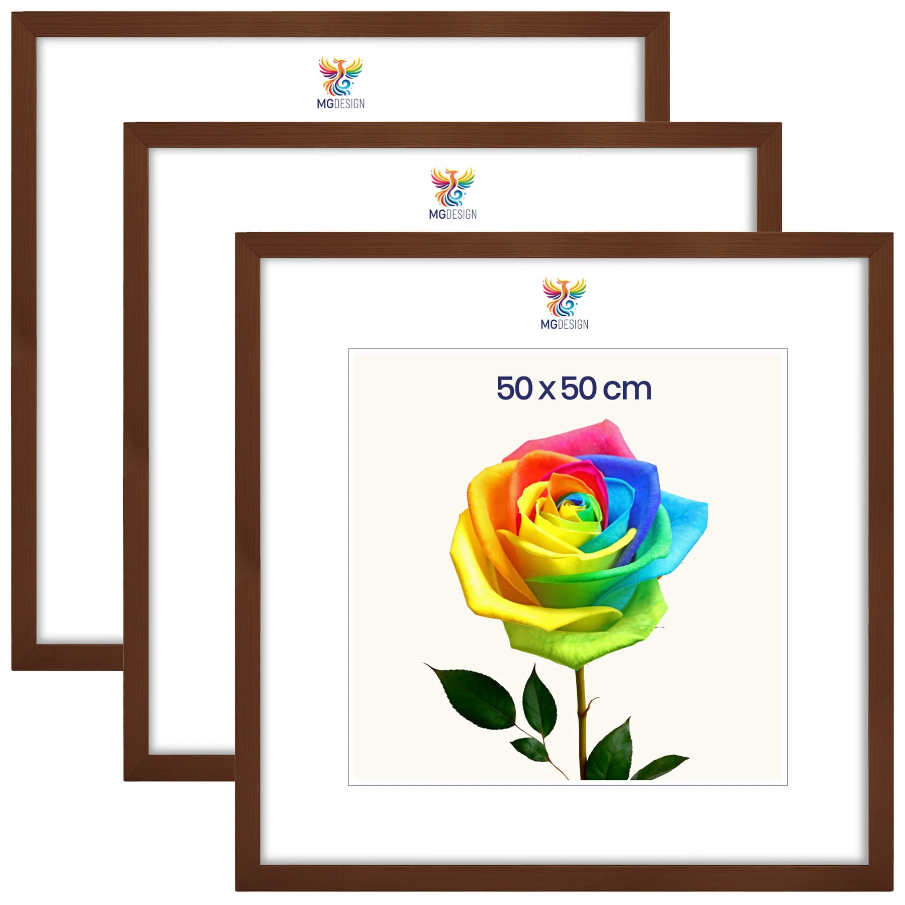 Set of 3 Brown photo frames 20 x 20 in (50 x 50 cm), made of natural wood