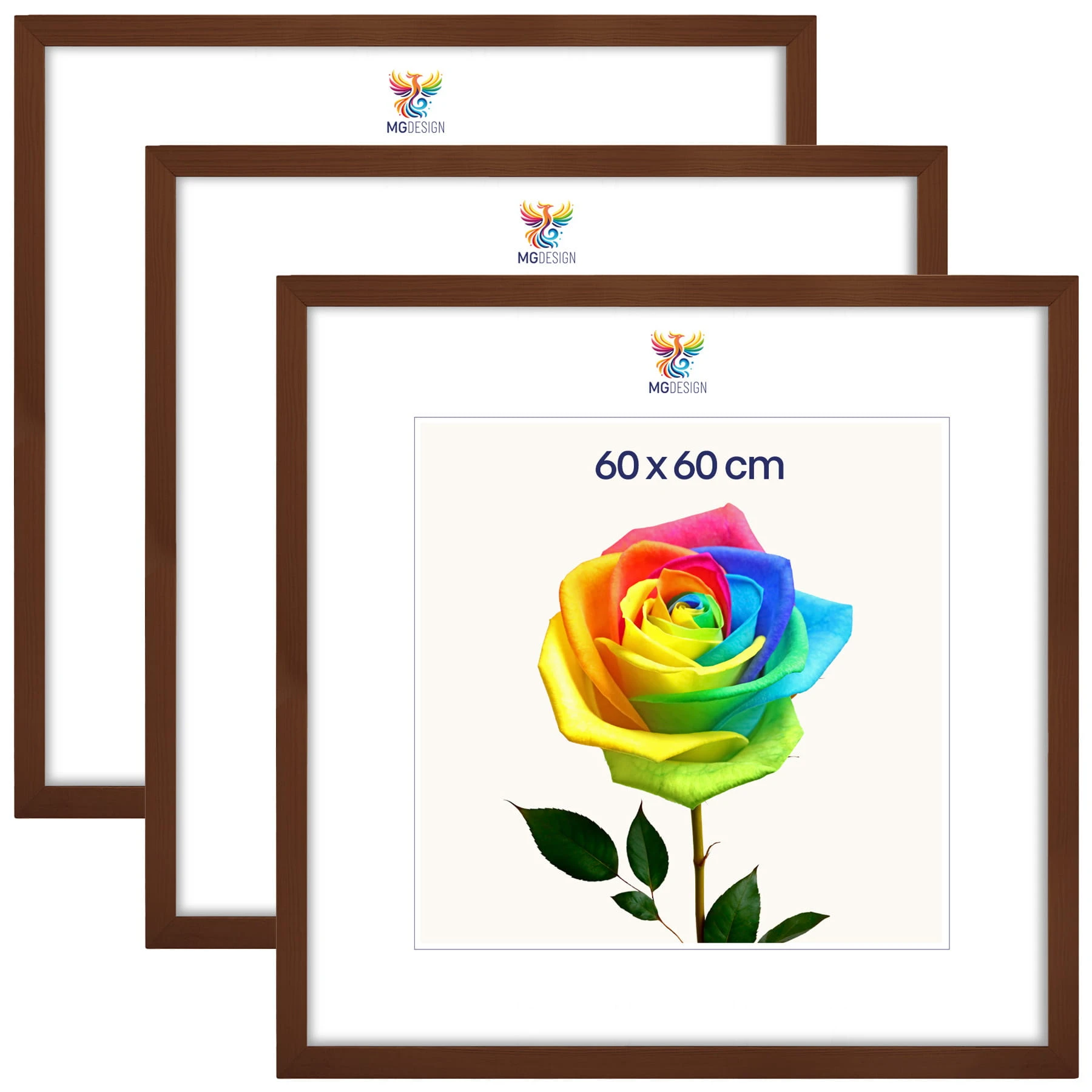 Set of 3 Brown photo frames 24 x 24 in (60 x 60 cm), made of natural wood