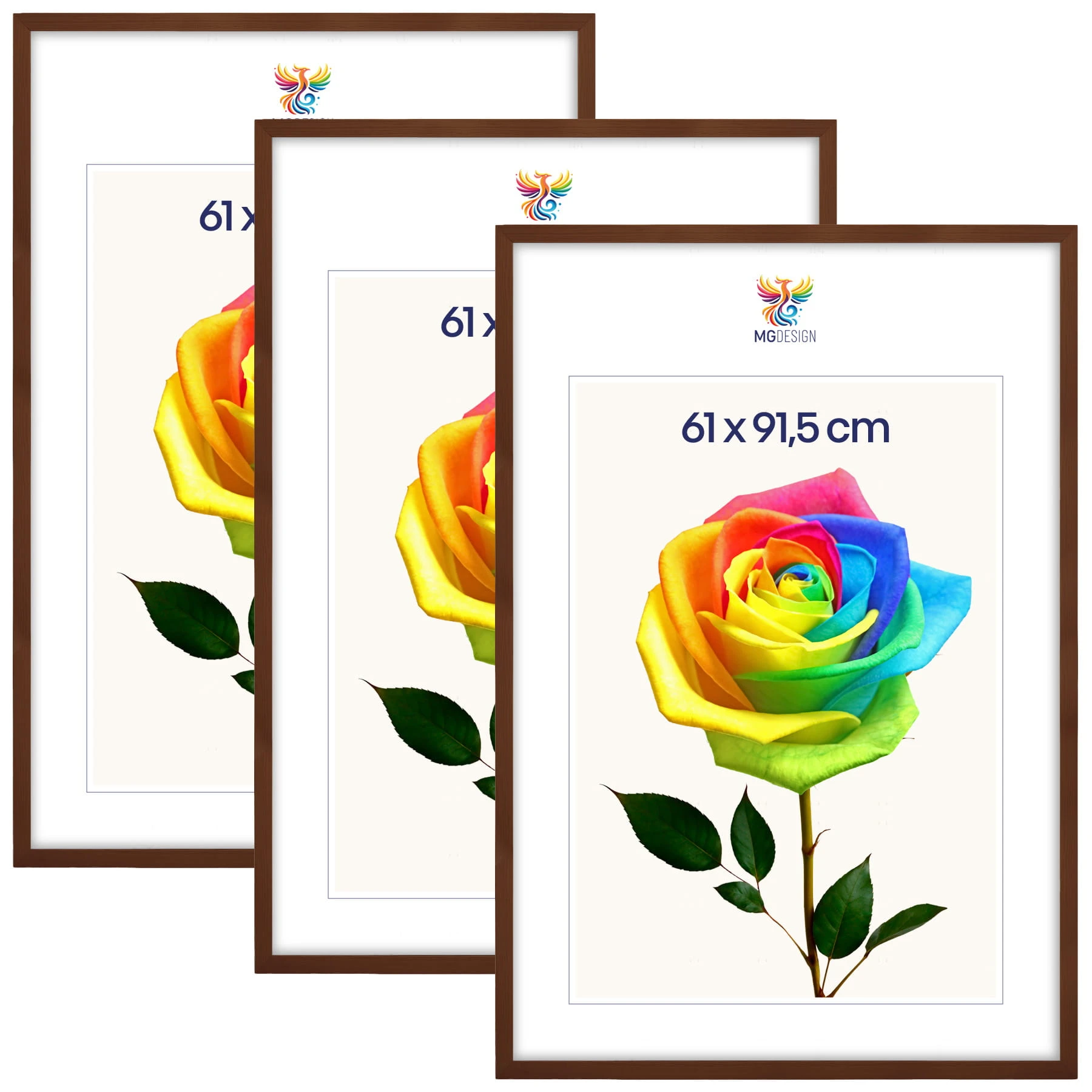 Set of 3 Brown photo frames 24 x 36 in (61 x 91,5 cm), made of natural wood