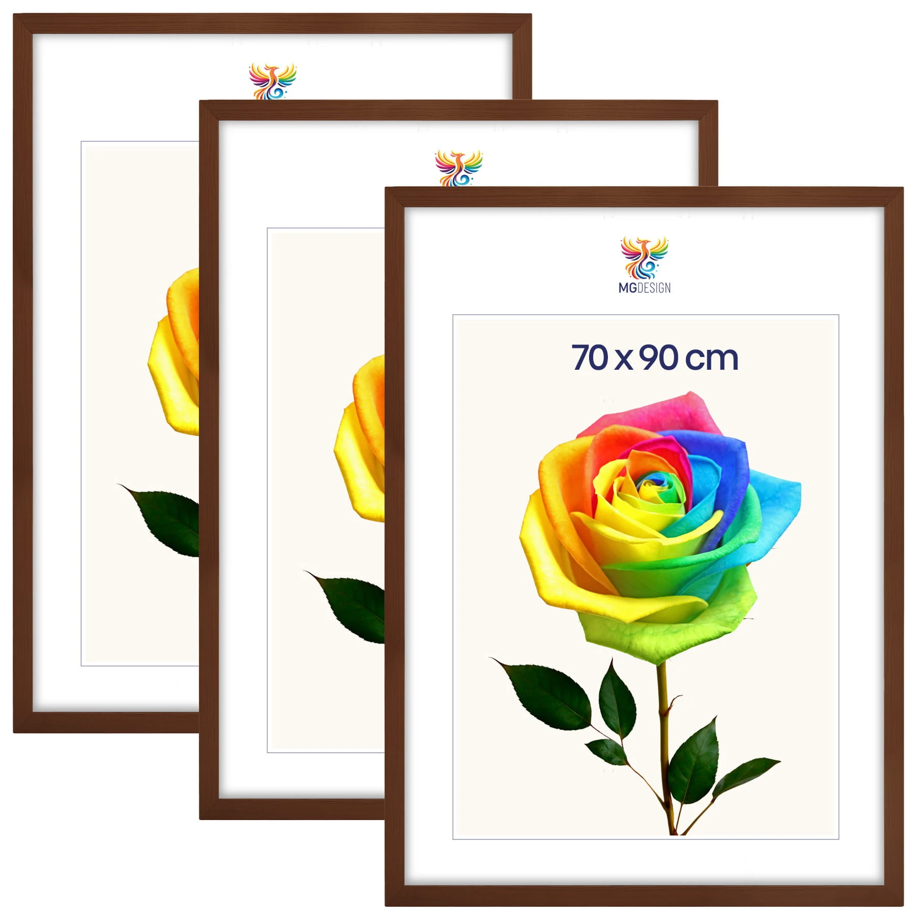 Set of 3 Brown photo frames 28 x 36 in (70 x 90 cm), made of natural wood
