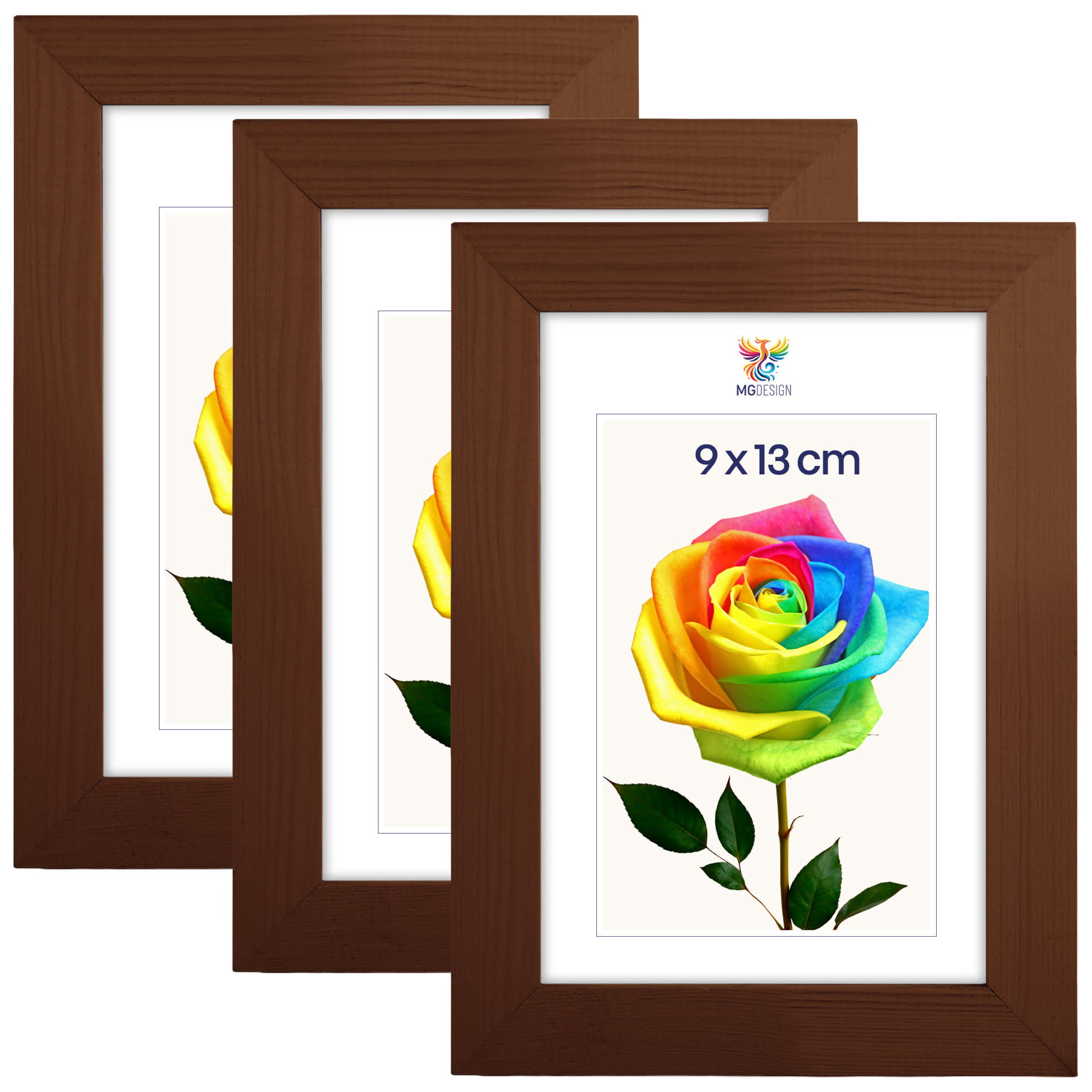 Set of 3 Brown photo frames 4 x 5 in (9 x 13 cm), made of natural wood