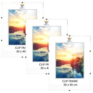 The set includes 3 clip frames with acrylic front, HDF backboard, metal clips and hangers – a clean, elegant framing solution for modern and classic interiors alike.