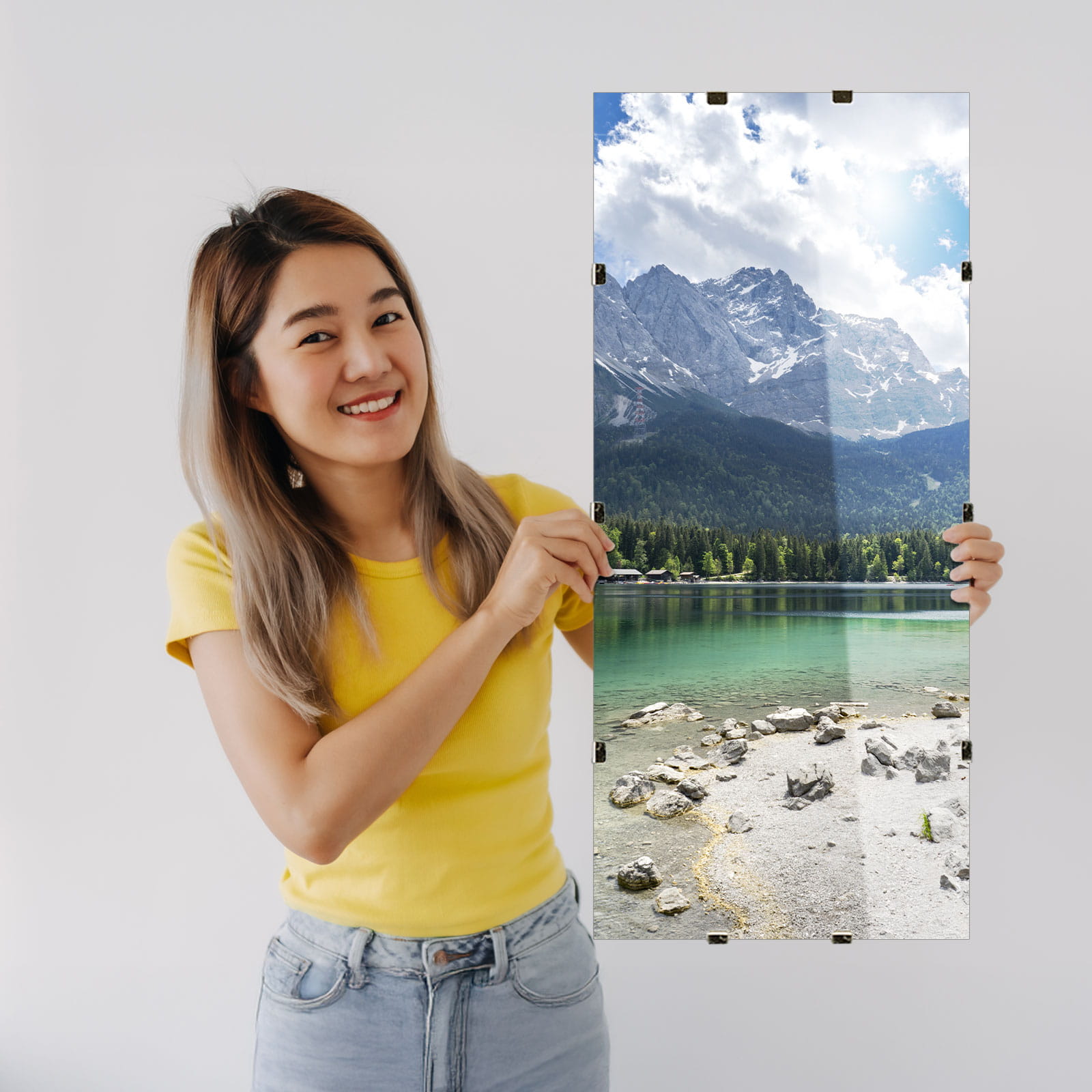 Metal clips allow quick artwork changes and easy wall mounting in both portrait and landscape orientation, giving you flexibility for different displays and spaces.