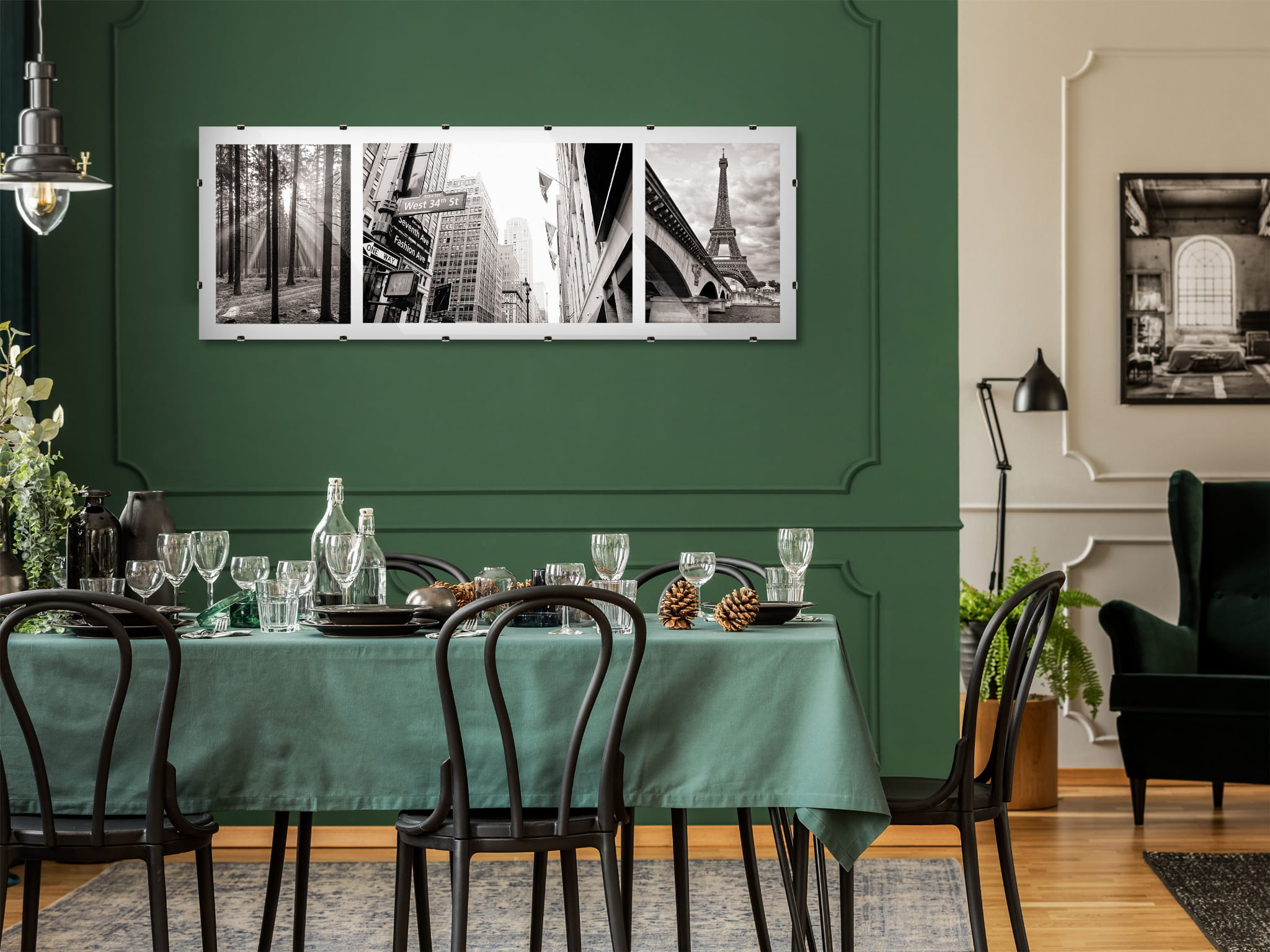 The set includes 3 clip frames with acrylic front, HDF backboard, metal clips and hangers – a clean, elegant framing solution for modern and classic interiors alike.