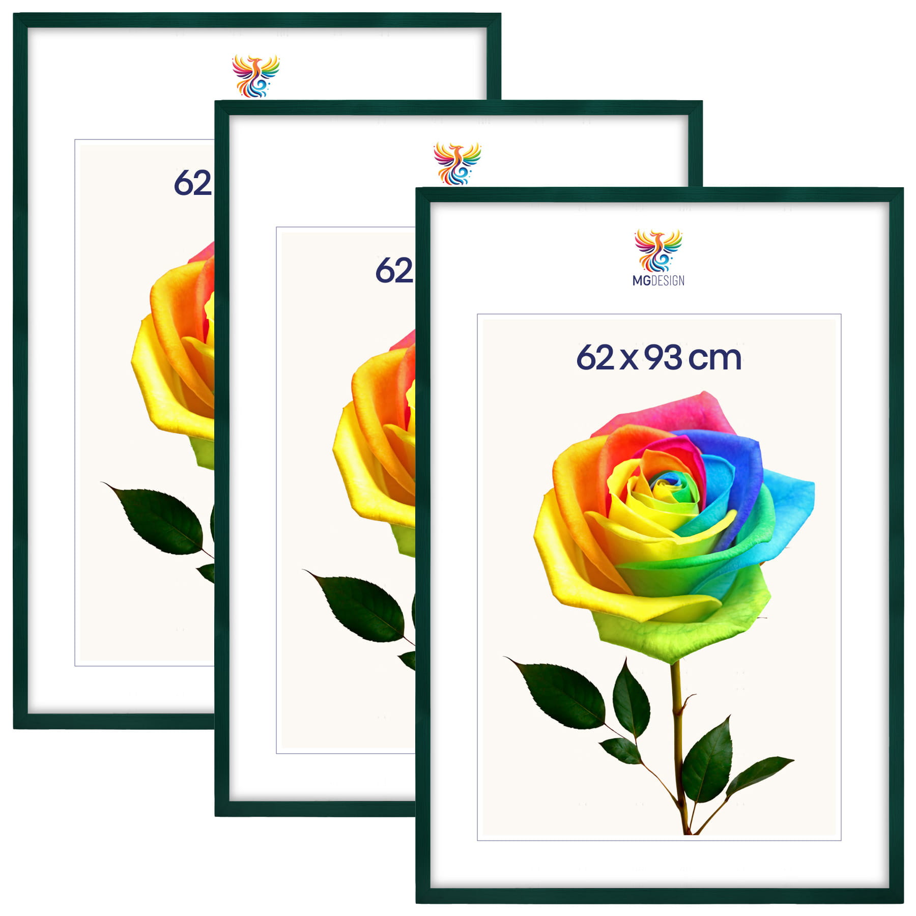 Set of 3 Green photo frames 24 x 36 in (62 x 93 cm), made of natural wood