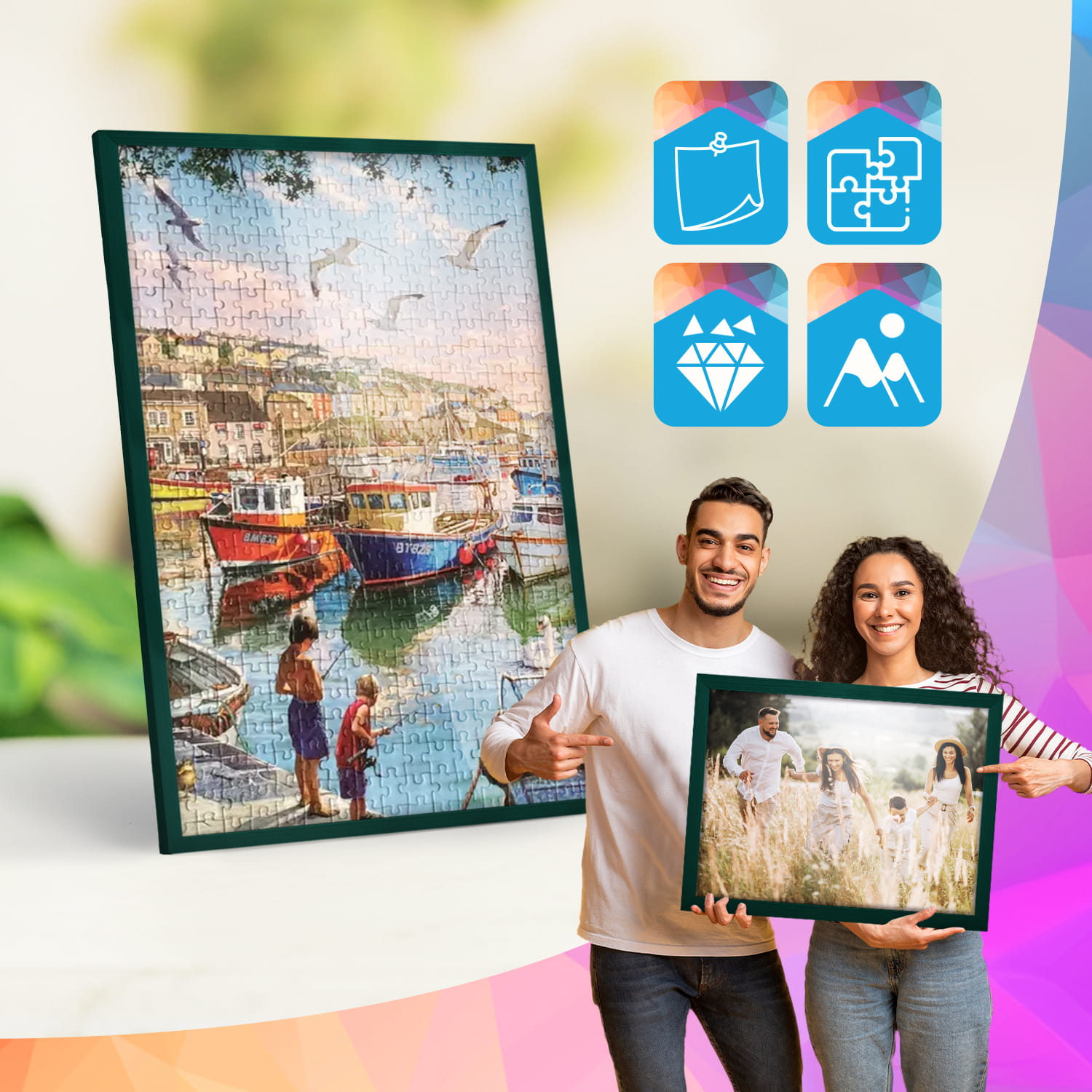 The frames are made of natural wood, carefully processed to preserve the visible structure of the material, which gives the whole a natural and timeless character. The front of the frames is made of lightweight and damage-resistant plexiglass, which is a safer alternative to traditional glass and ensures good visibility of the framed works.