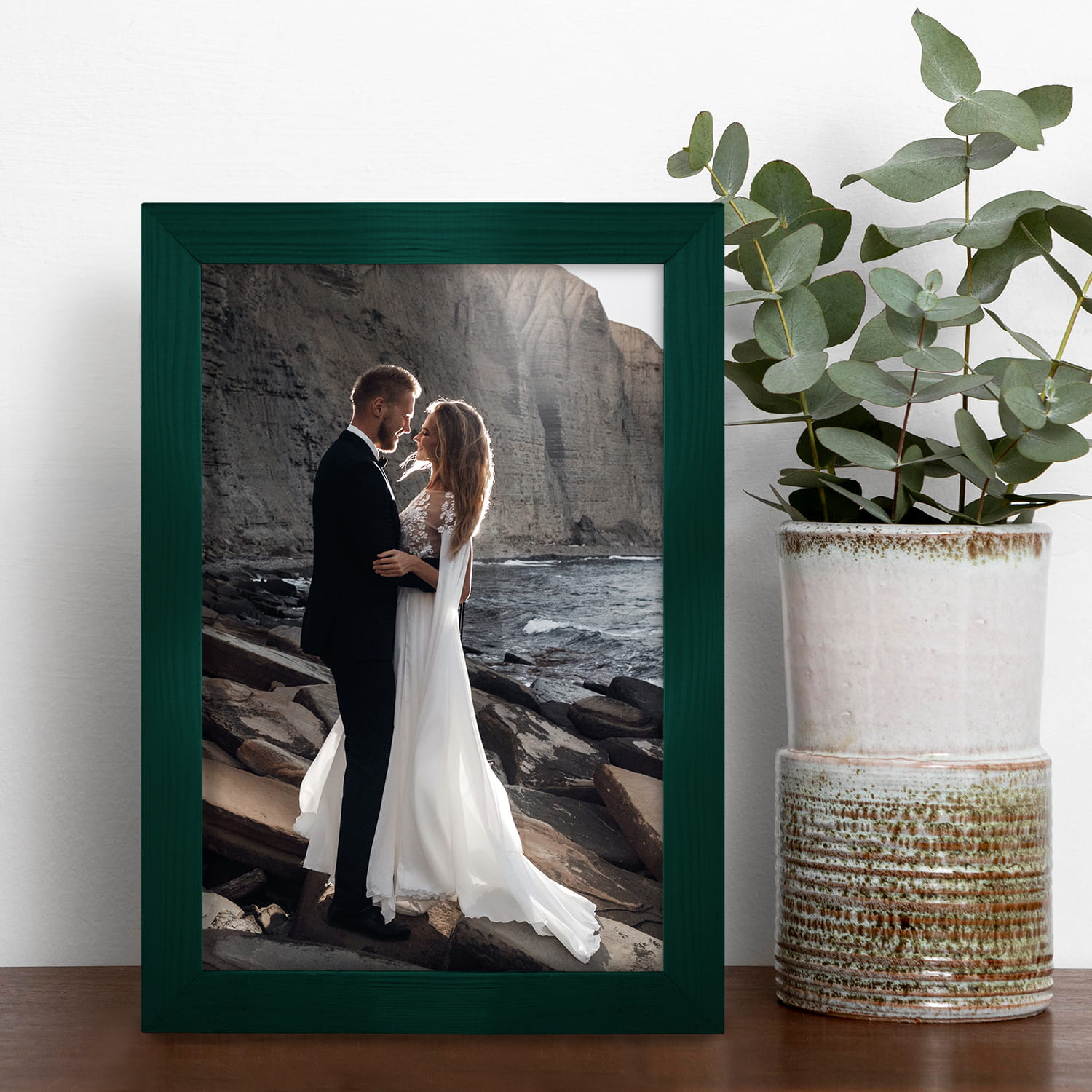 Set of 3 Green photo frames 6 x 9 in (15 x 23 cm), made of natural wood