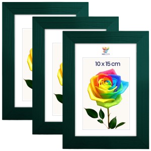 Set of 3 Green photo frames A6 4 x 6 in (10 x 15 cm), made of natural wood