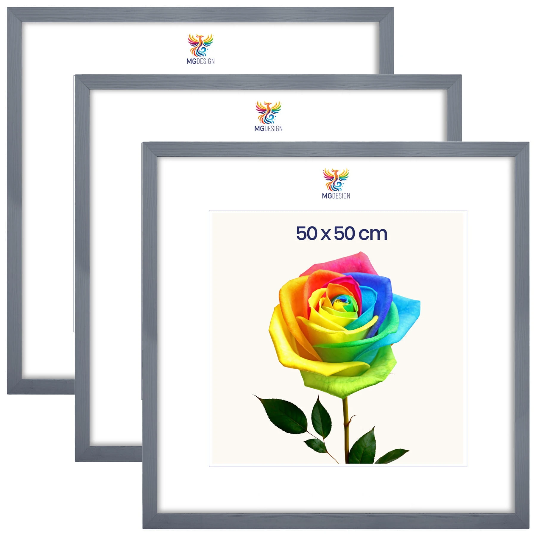 Set of 3 Grey photo frames 20 x 20 in (50 x 50 cm), made of natural wood