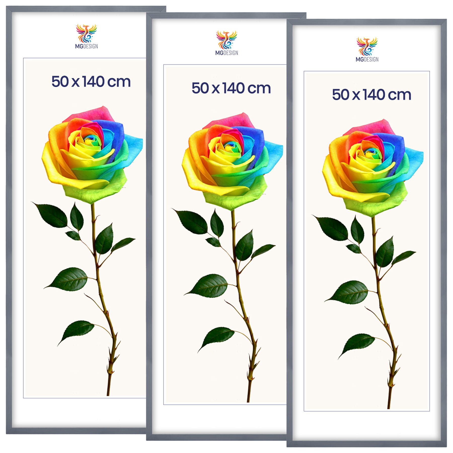Set of 3 Grey photo frames 20 x 55 in (50 x 140 cm), made of natural wood