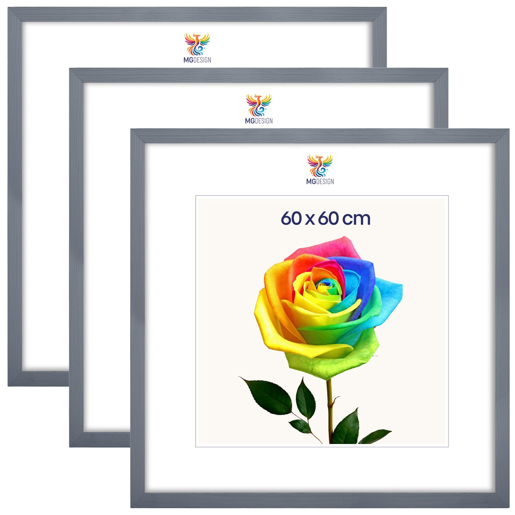 Set of 3 Grey photo frames 24 x 24 in (60 x 60 cm), made of natural wood
