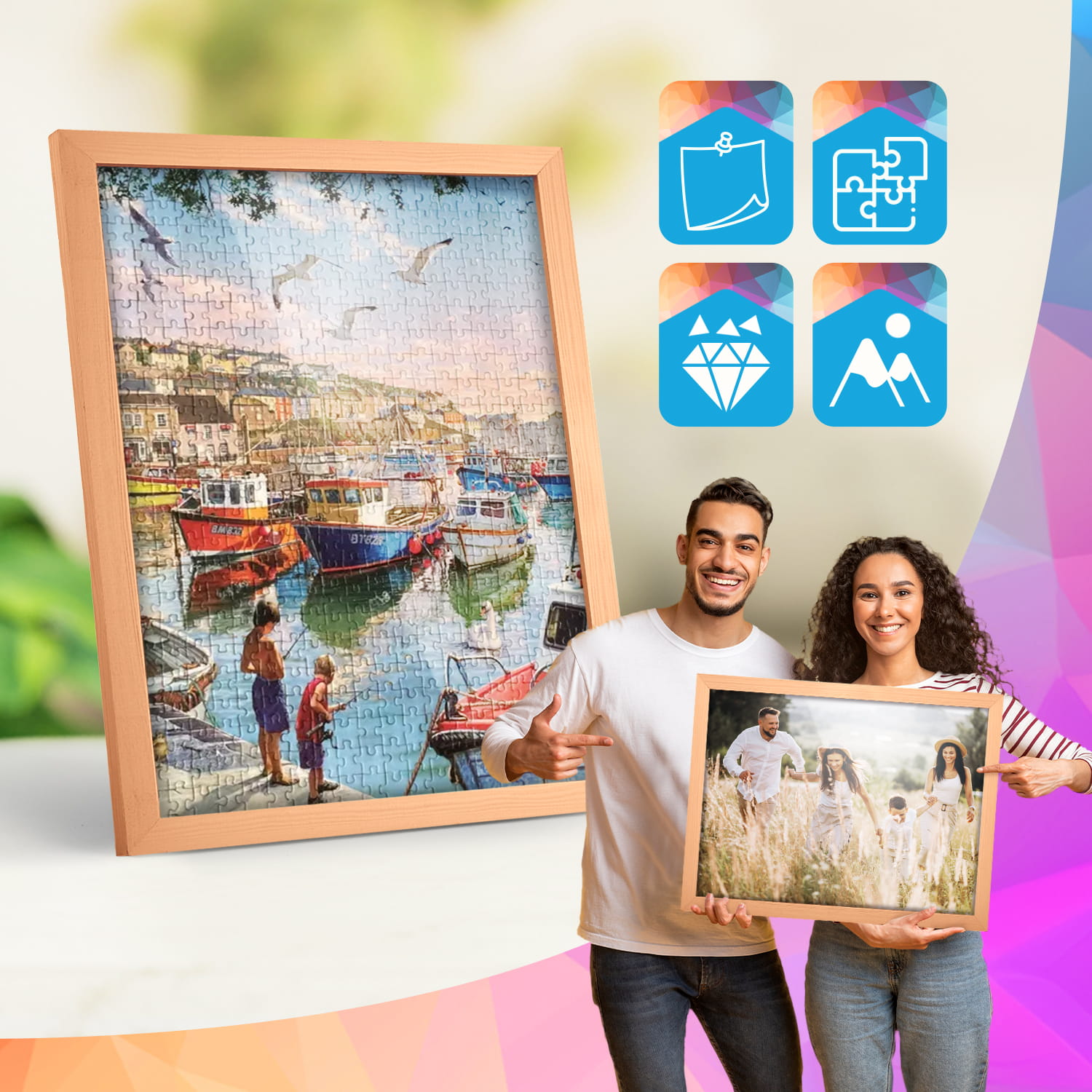 The frames are made of natural wood, carefully processed to preserve the visible structure of the material, which gives the whole a natural and timeless character. The front of the frames is made of lightweight and damage-resistant plexiglass, which is a safer alternative to traditional glass and ensures good visibility of the framed works.
